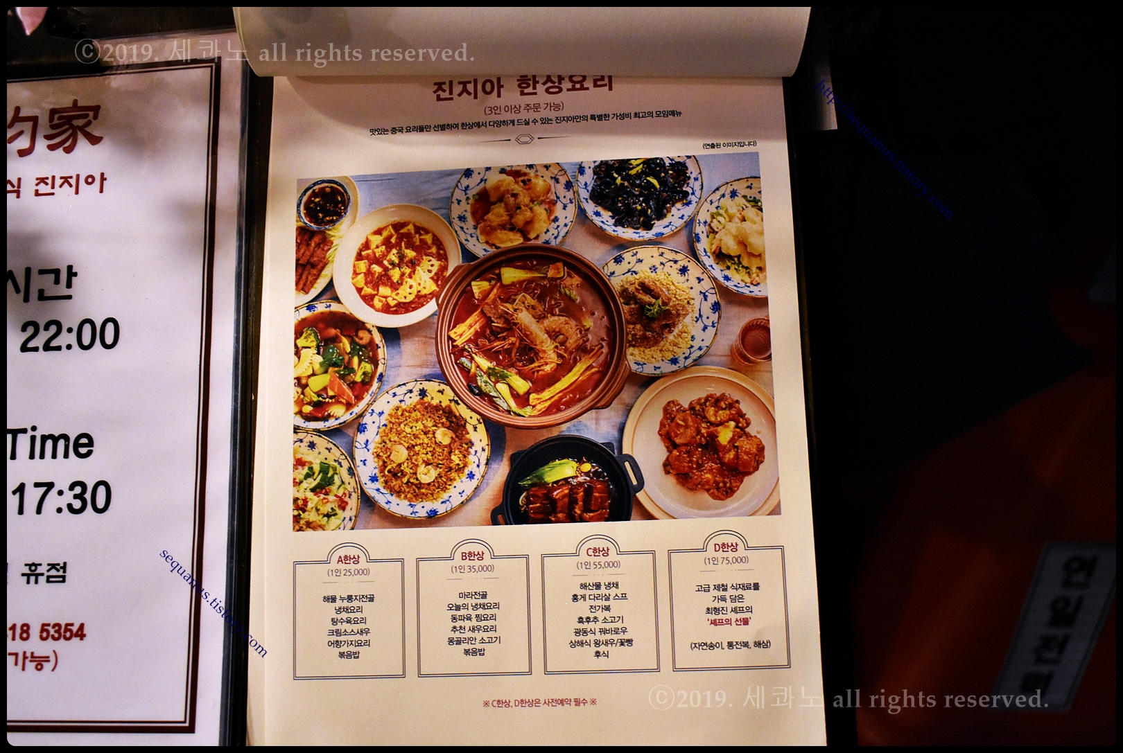 3인 이상의 단체의 한 상 요리(코스 요리)만 예약 가능하다.