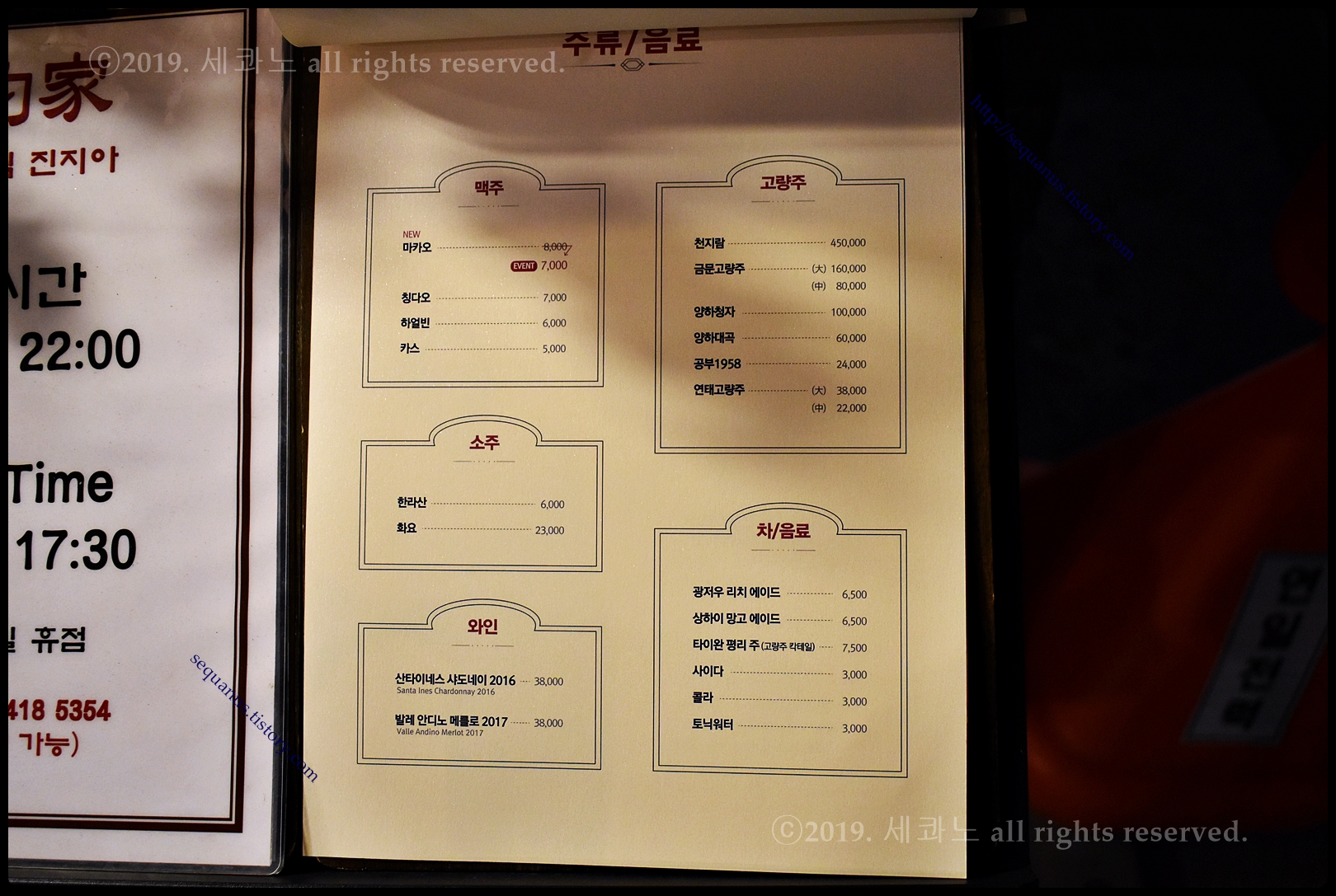 주류, 음료 메뉴판까지 올려두었으니