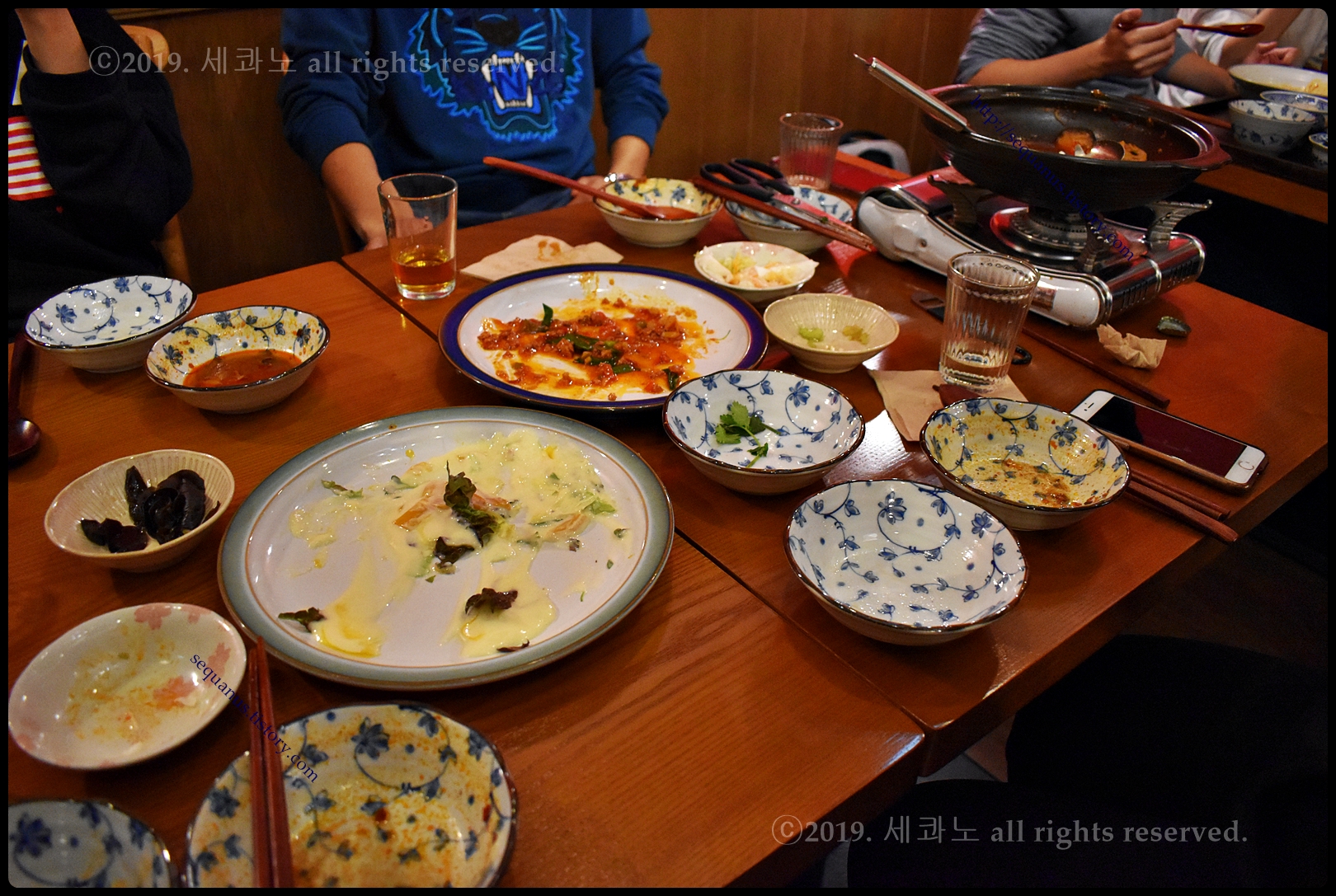 테이블 위에서 국물이 끓기 시작하면