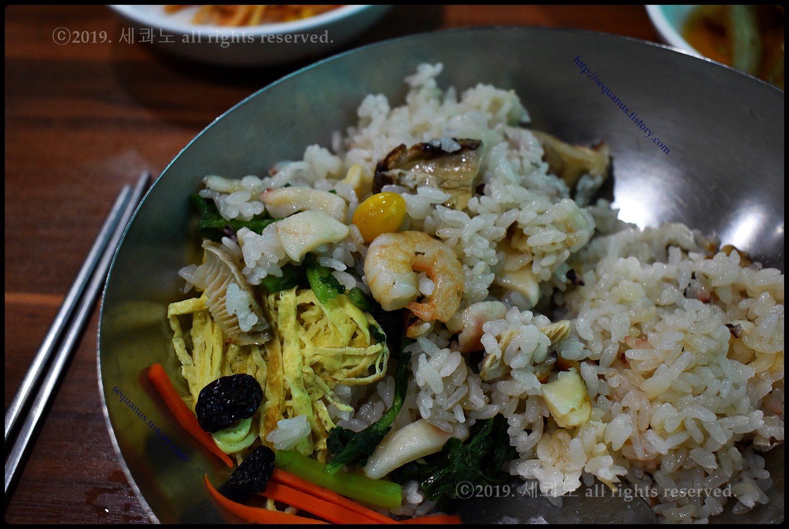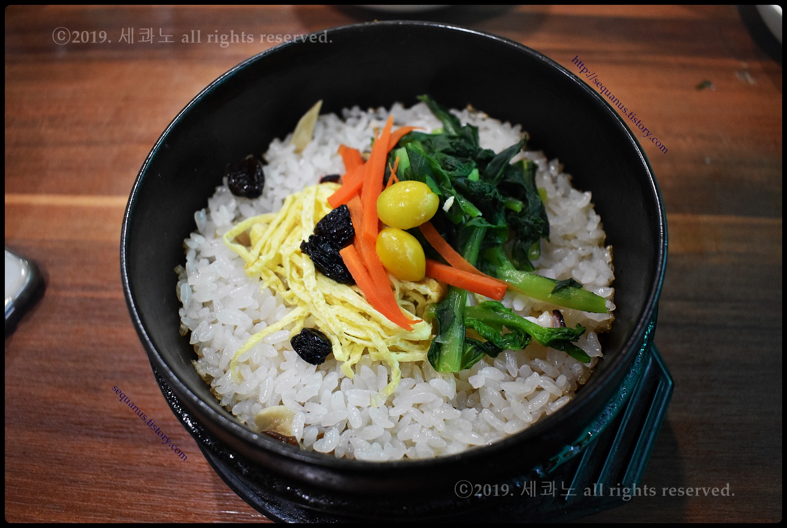 이곳의 영양 솥밥은 무쇠솥을 사용하여