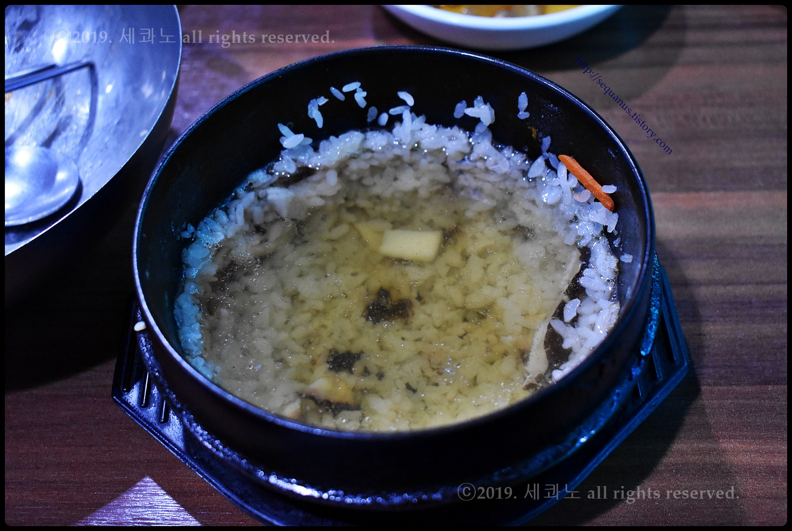 이 곳은 콩나물국의 국물을 넣어 누룽지를 만들어 먹는 것이 포인트라 한다.