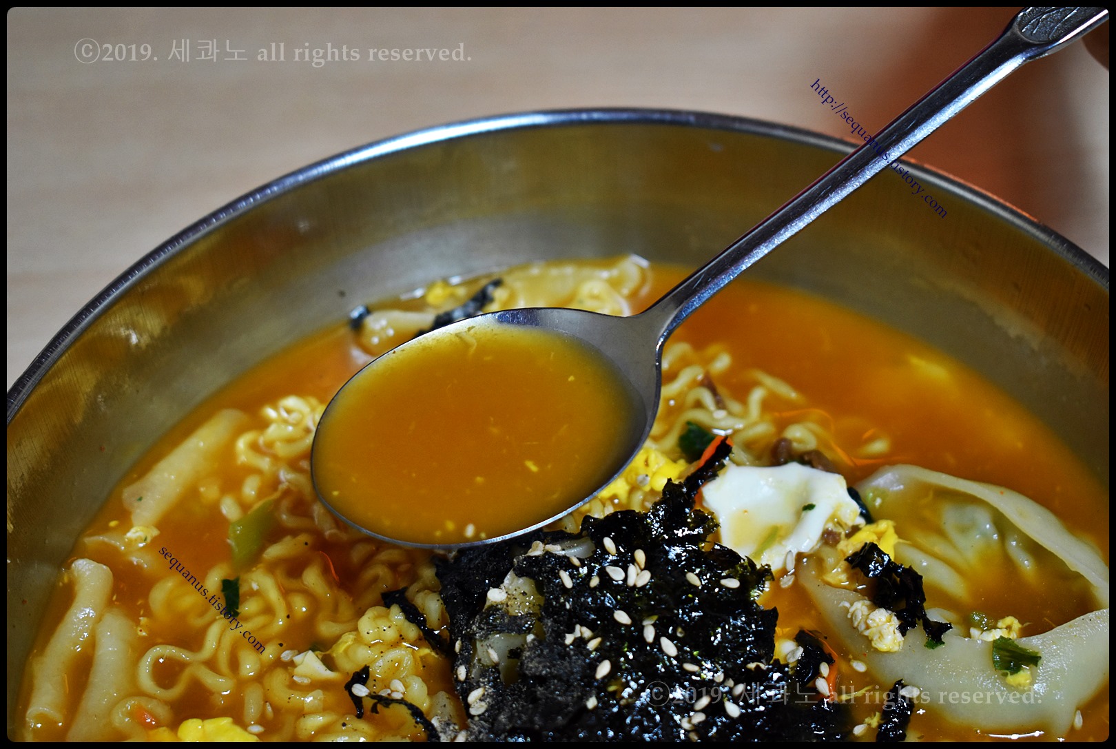 국물은 누구나 아는 그 라면 국물이다.