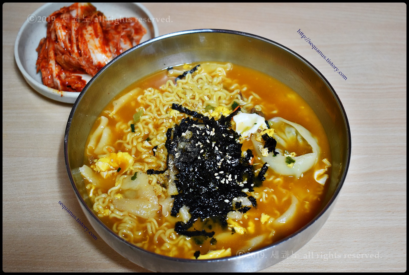 라면에 수제비와 만두를 넣고