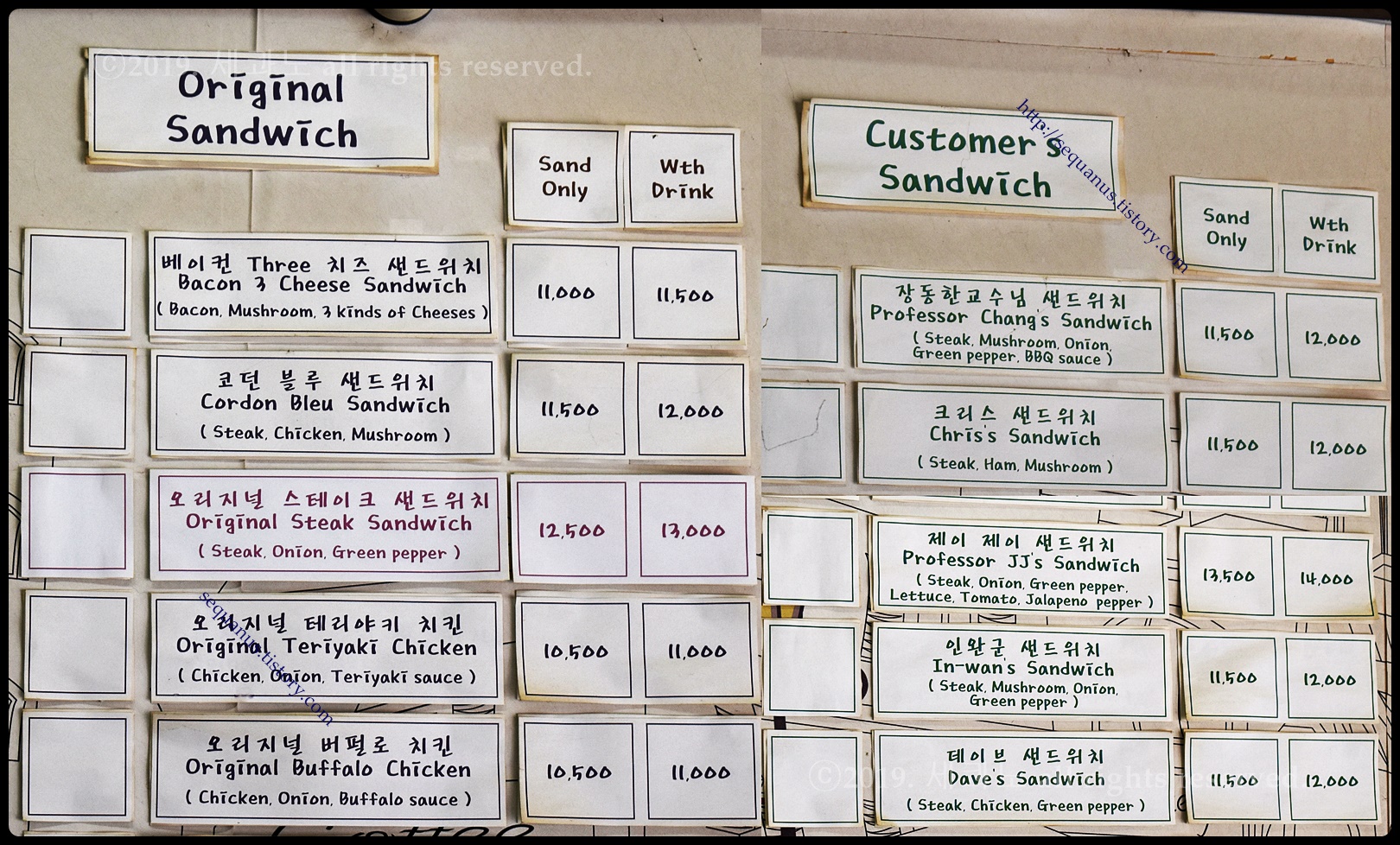 [인완군 샌드위치], [장교수님 샌드위치], [스티브 샌드위치] 등