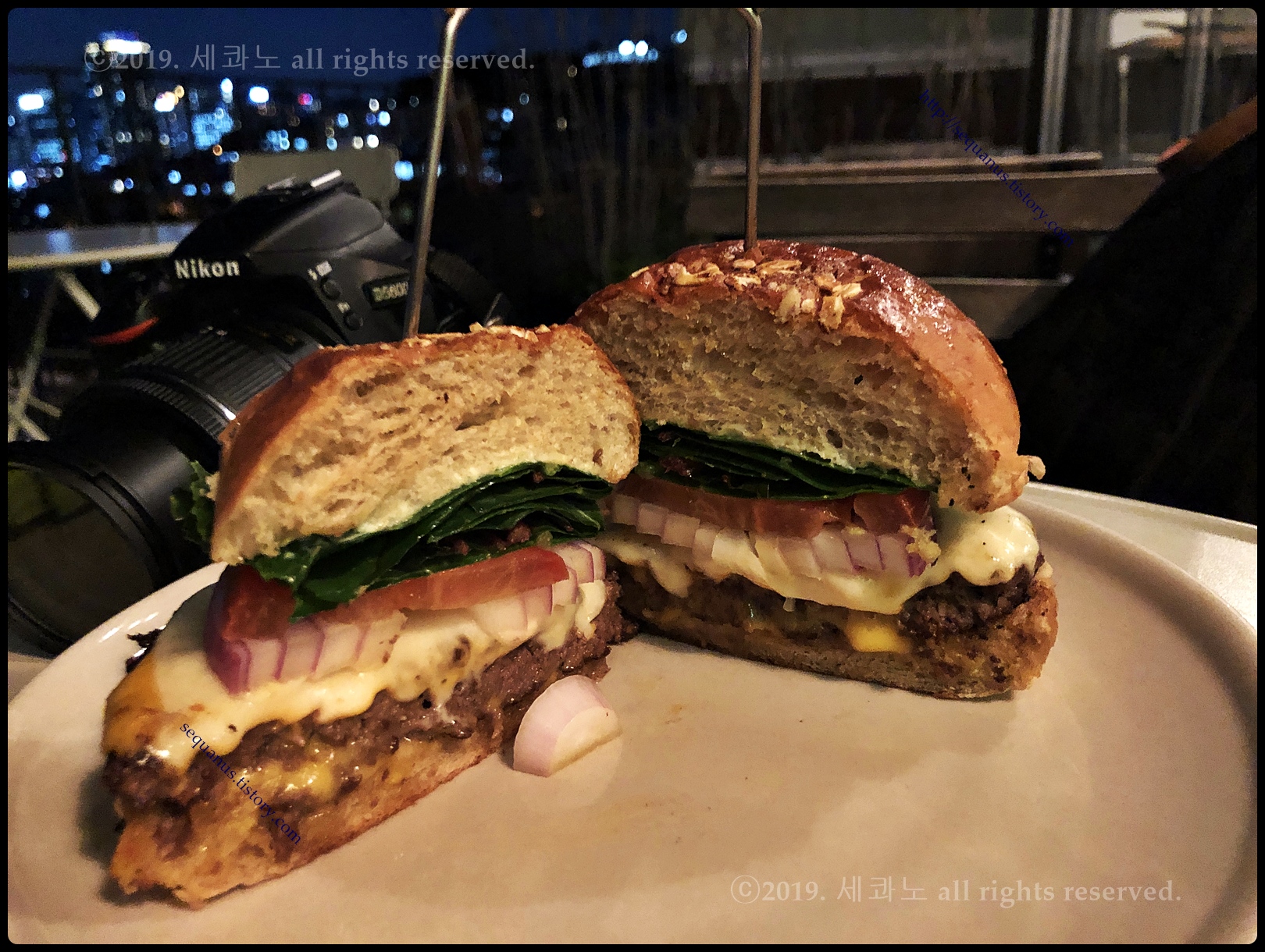 야경 배경으로 손으로 들고 먹은 버거 사진 한 장 ㅋ