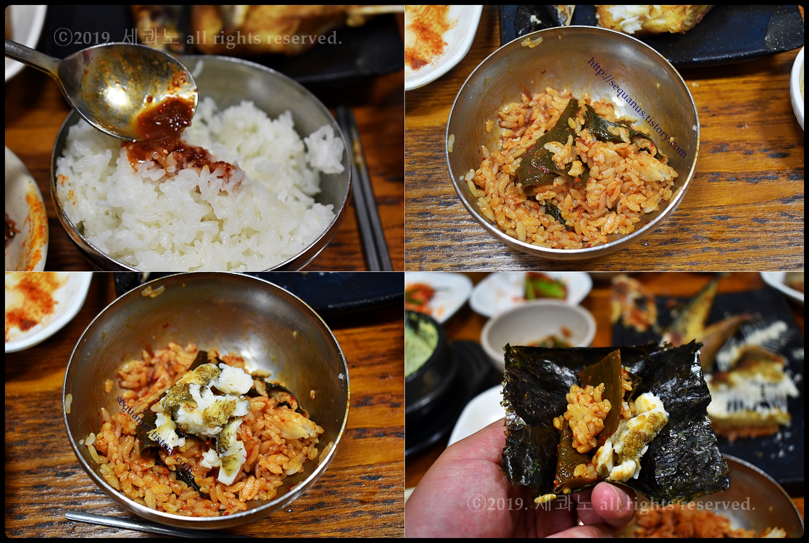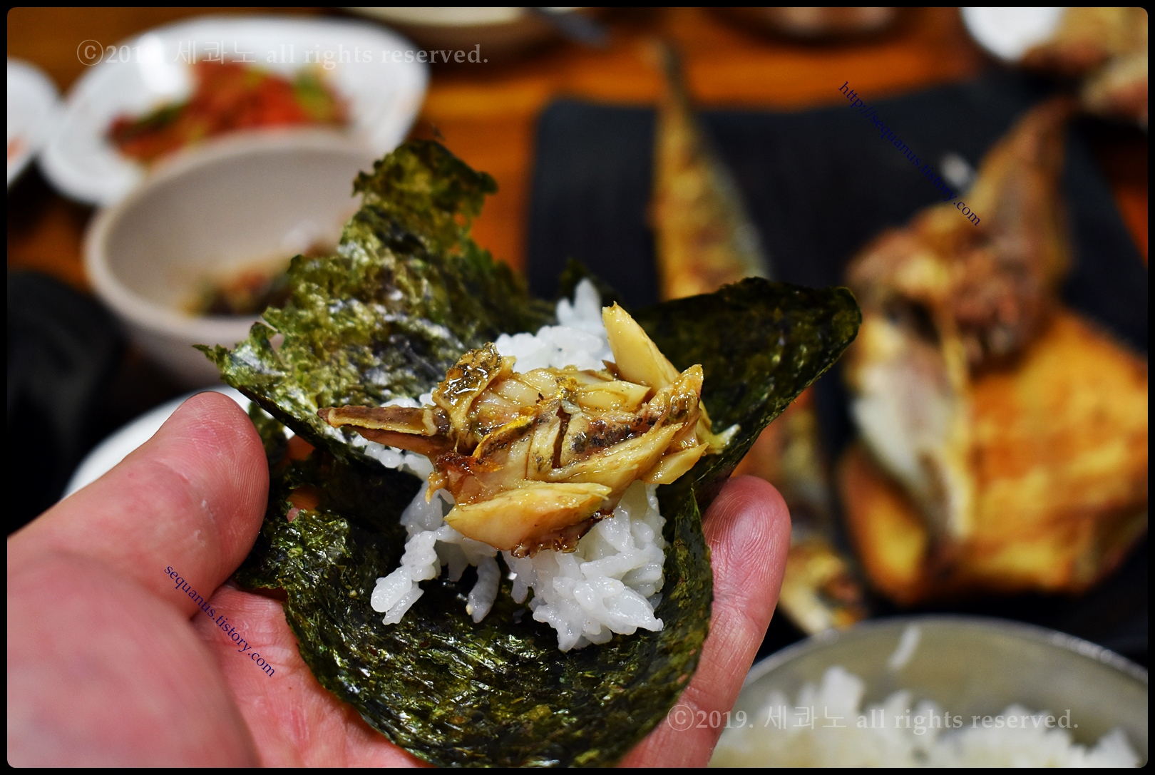 거기에 생선구이 살 올려 김에 싸 먹는 것이었다.