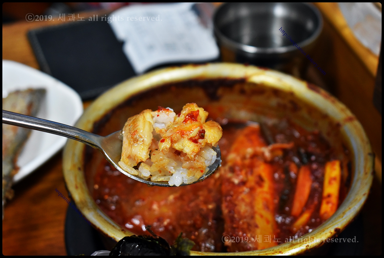 숟가락 위에 얹어 갈치만 한 입 가득 먹으면