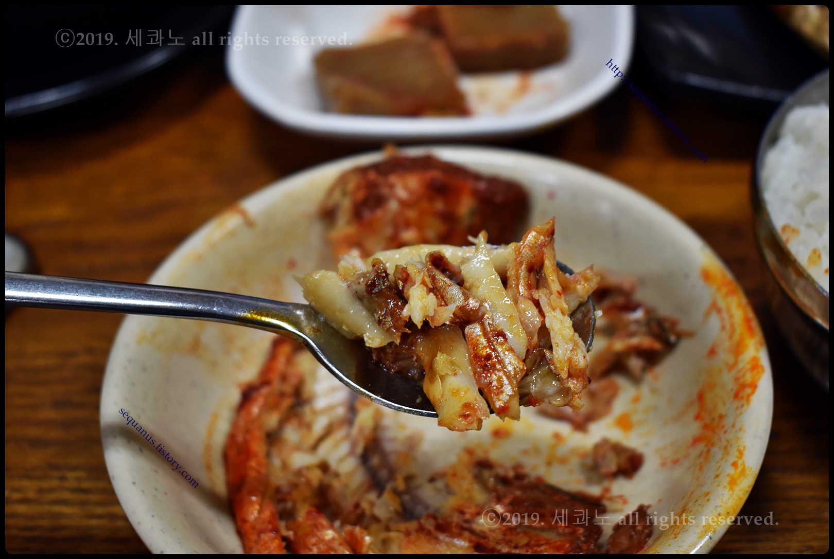 가운데 두꺼운 뼈만 발라내고 먹었다.