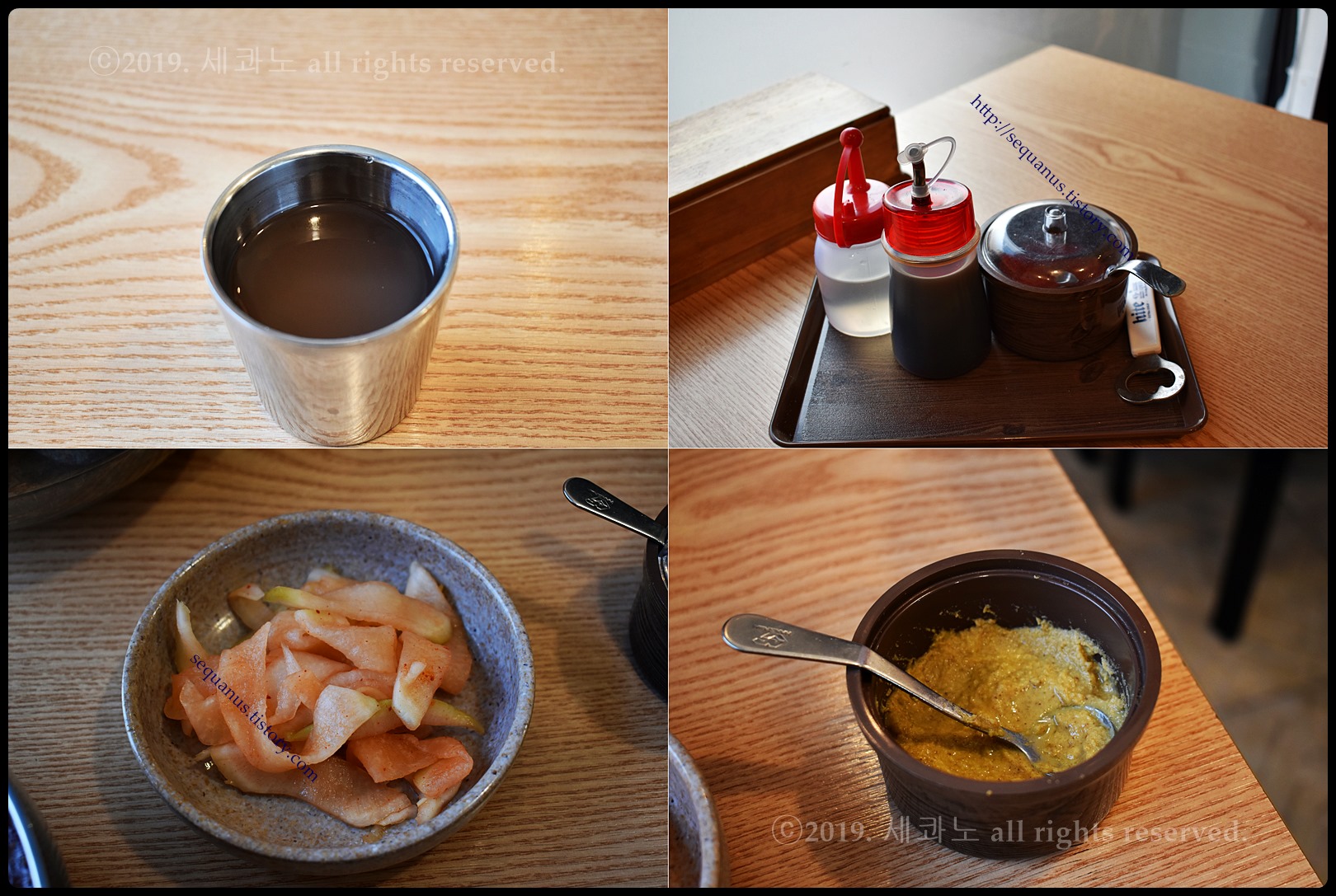 그리고 테이블에는 고춧가루, 식초, 간장이 있었고