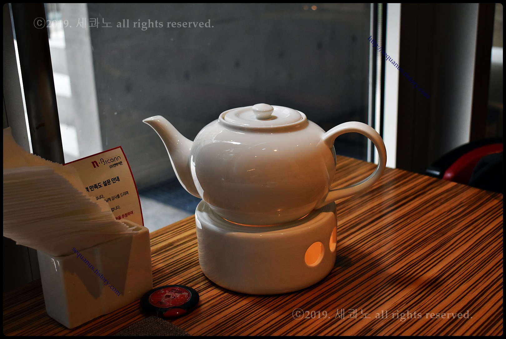 워머 위에서 따뜻하게 마실 수 있는 재스민 차와