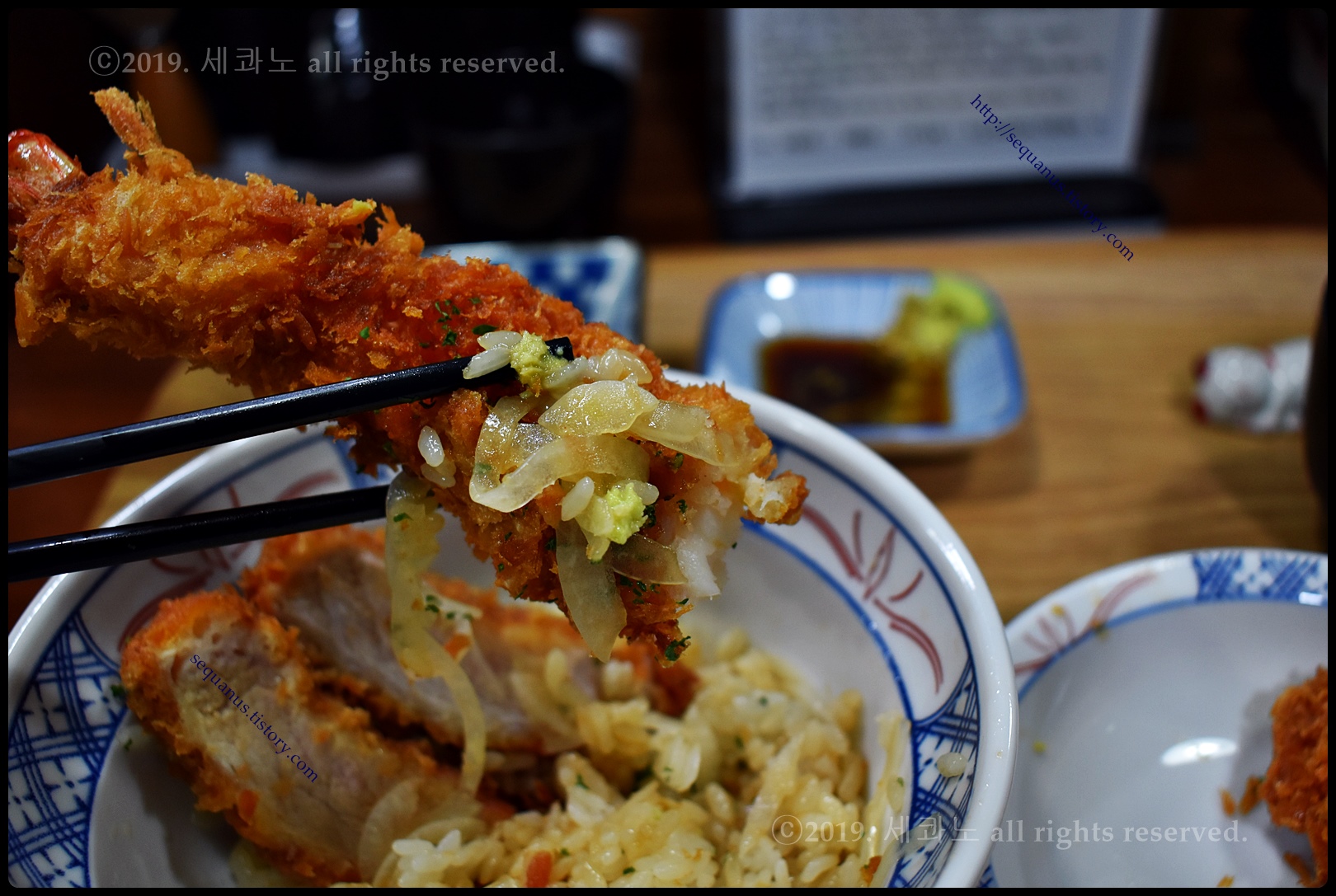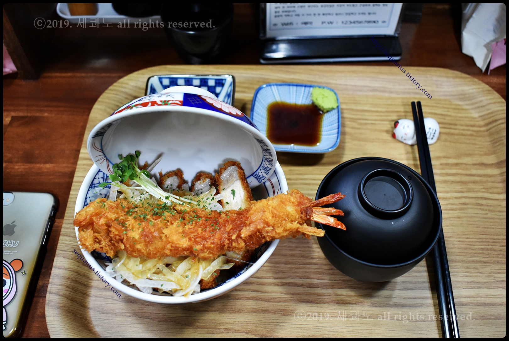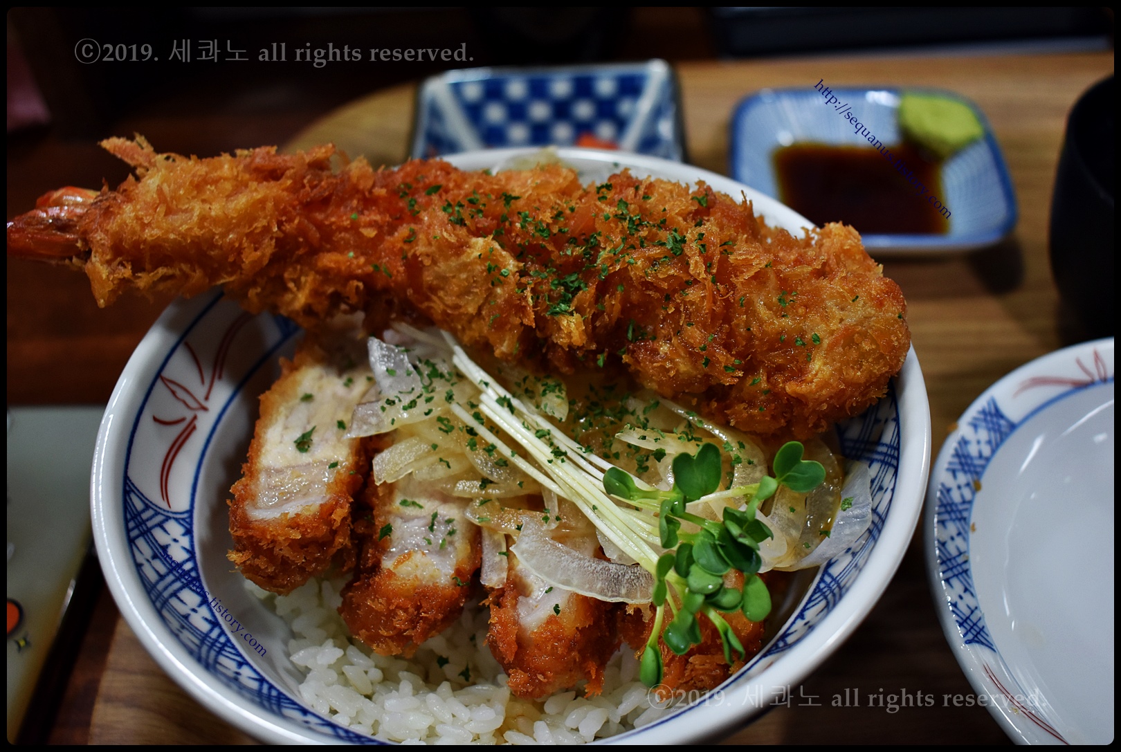 그리고 100g 내외 특등심 카츠와 에비동 새우 1마리 믹스동 8천 원