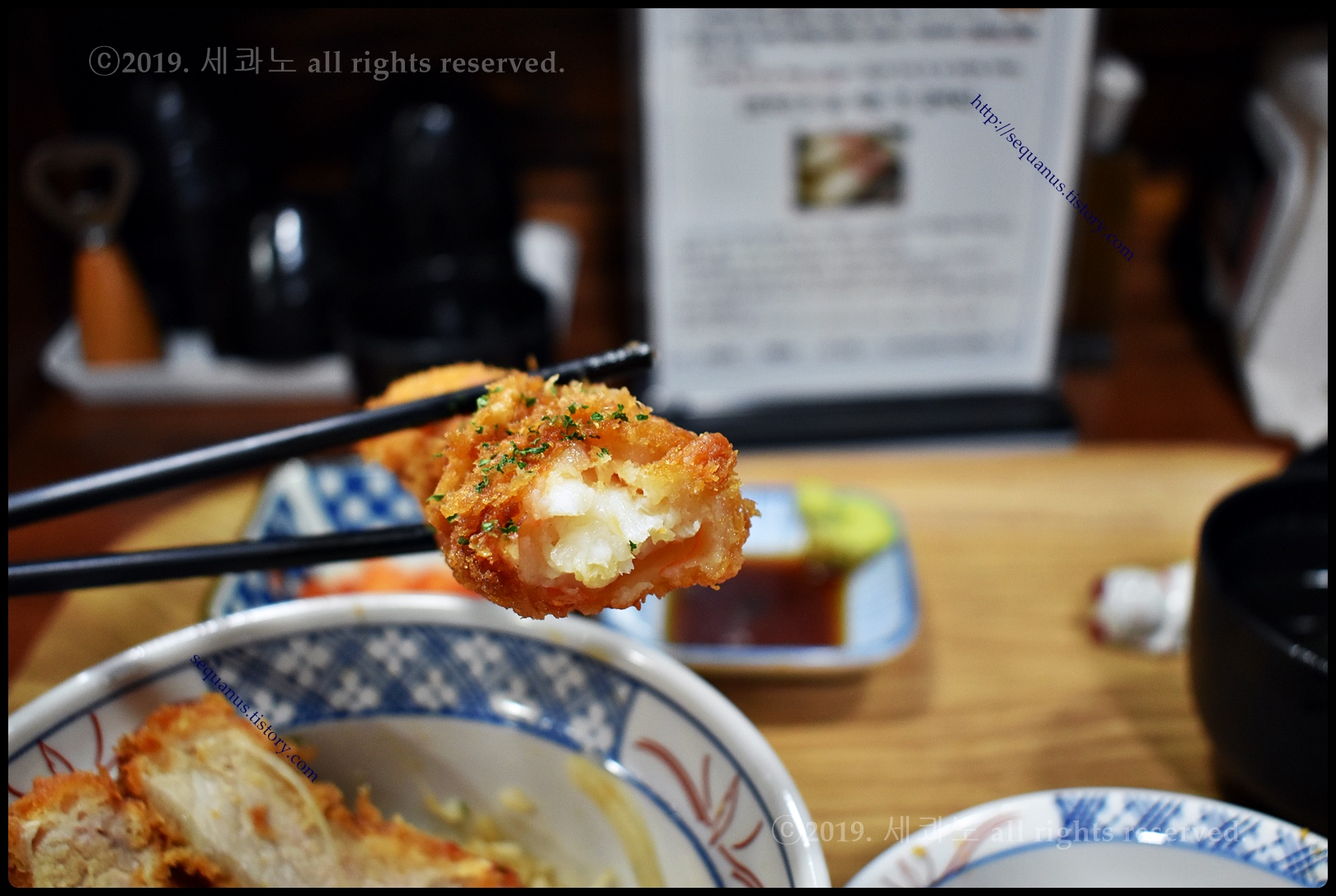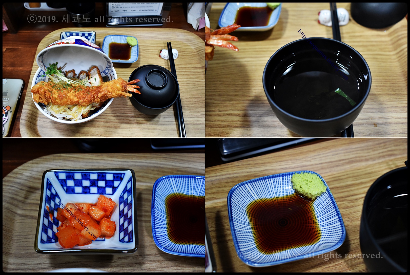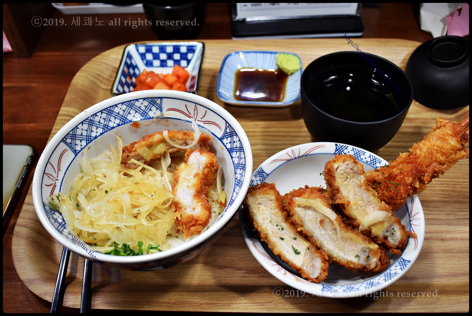 그리고 100g 내외 특등심 카츠와 에비동 새우 1마리 믹스동 8천 원