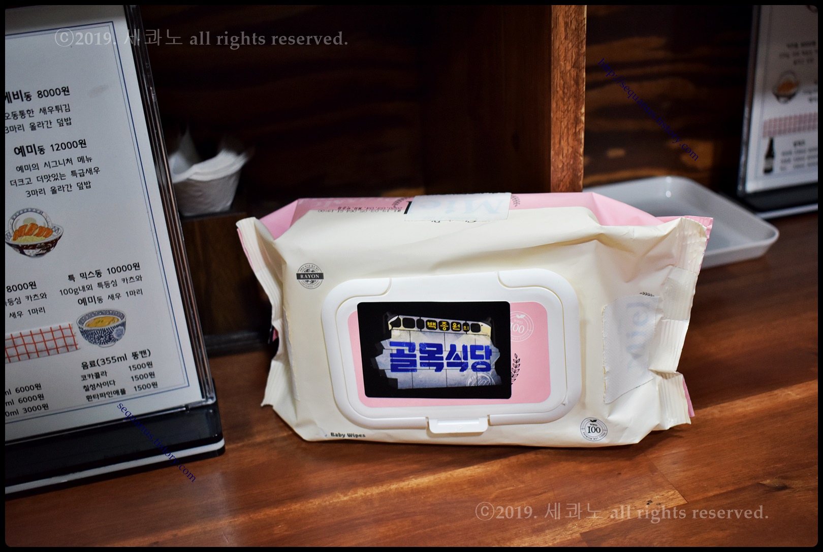 그리고 골목식당 스티커가 붙어 있는 물티슈가 준비되어 있었다.
