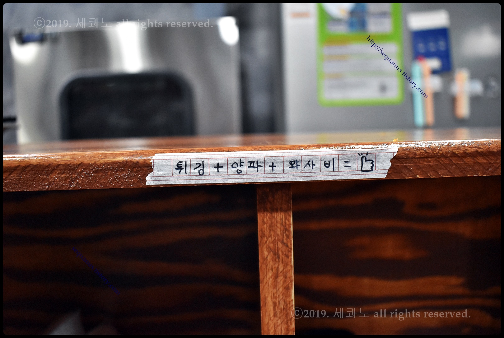 튀김을 양파, 와사비와 같이 먹으라 되어 있으니