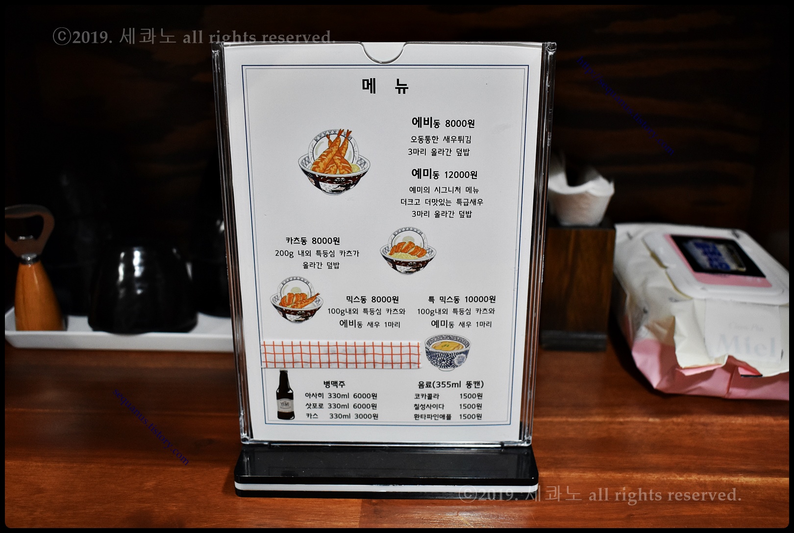 당시 메뉴는 오동통한 새우튀김 3마리가 올라간 에비동 8천 원