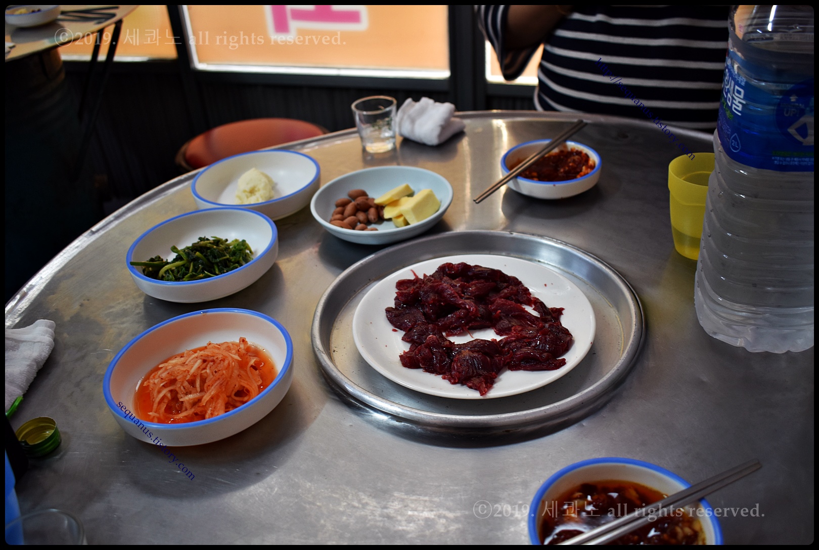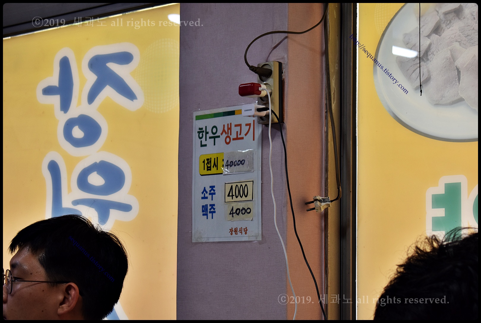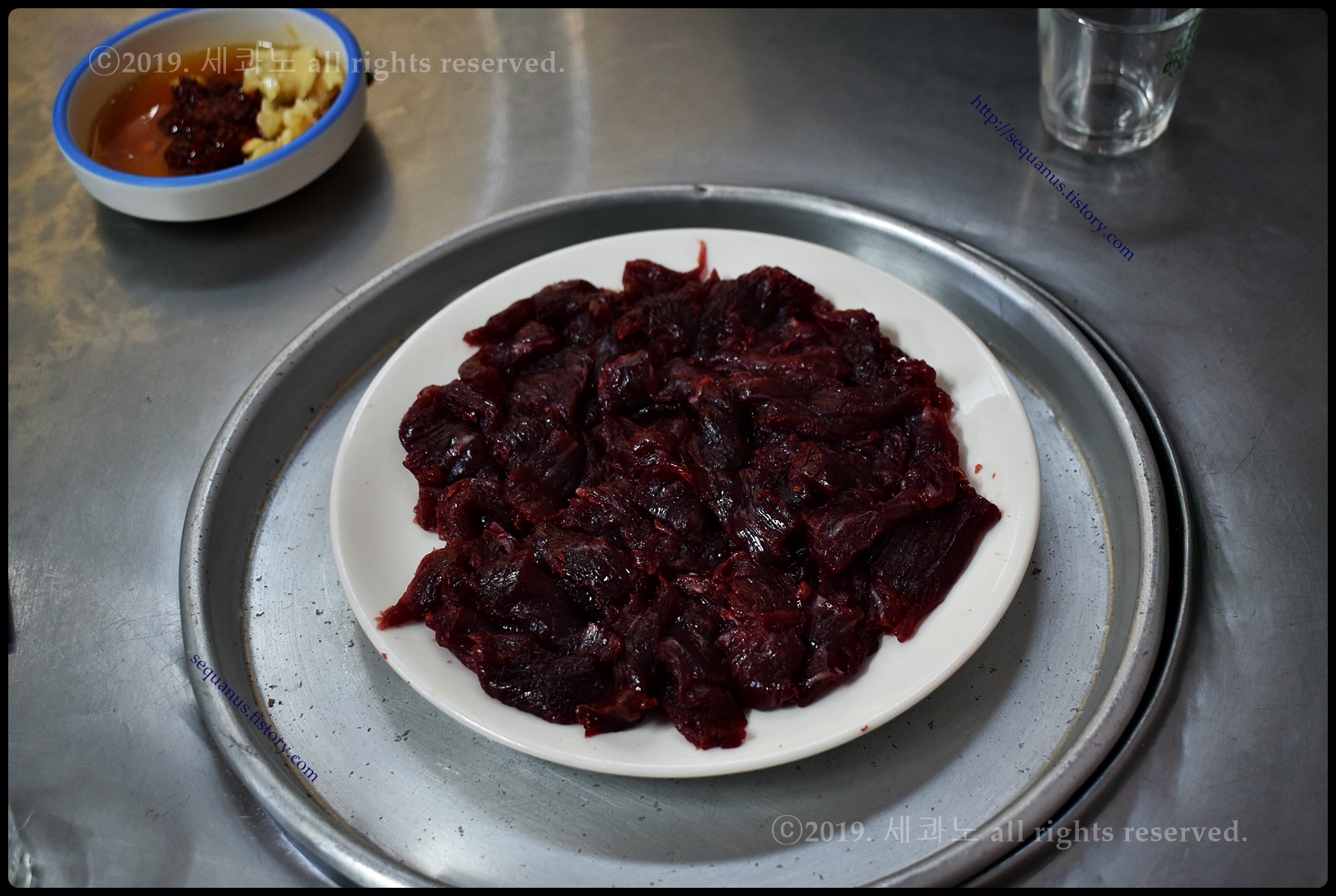 간판에는 생고기와 육회, 그리고 양지머리 등도 있는 것 같지만