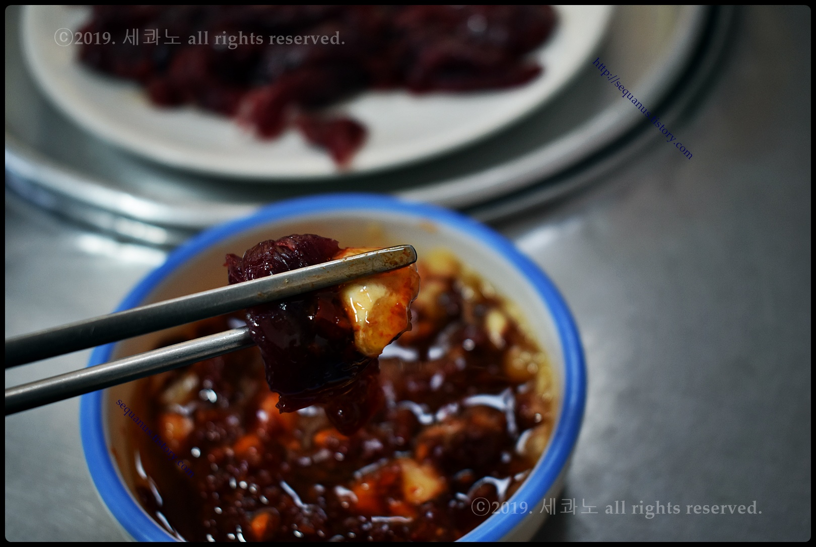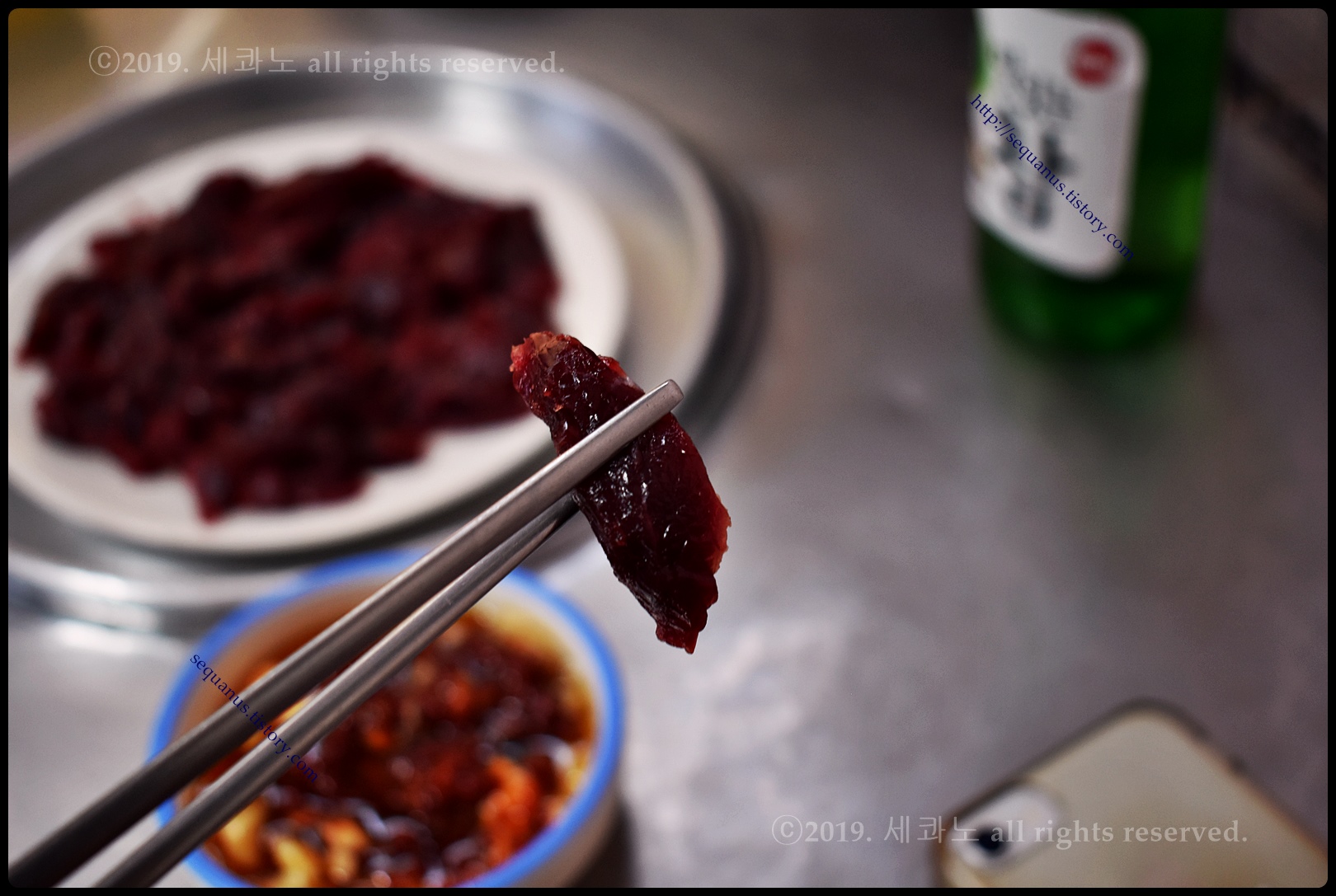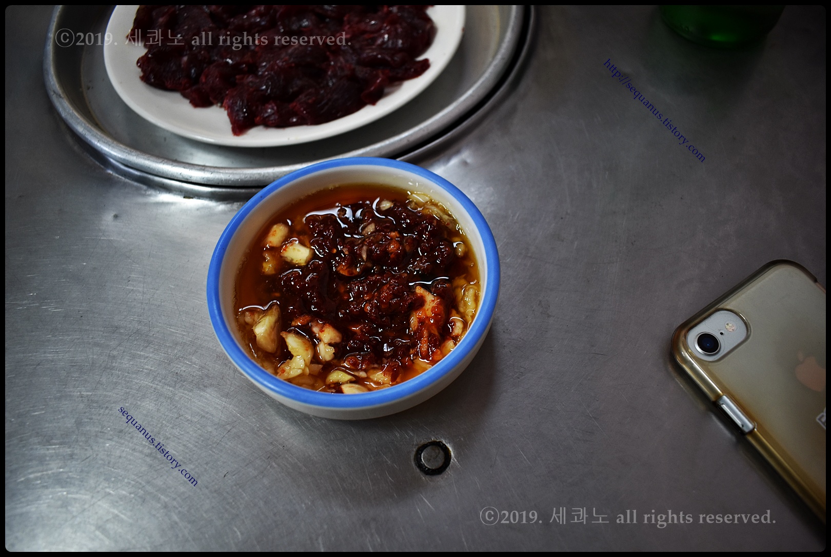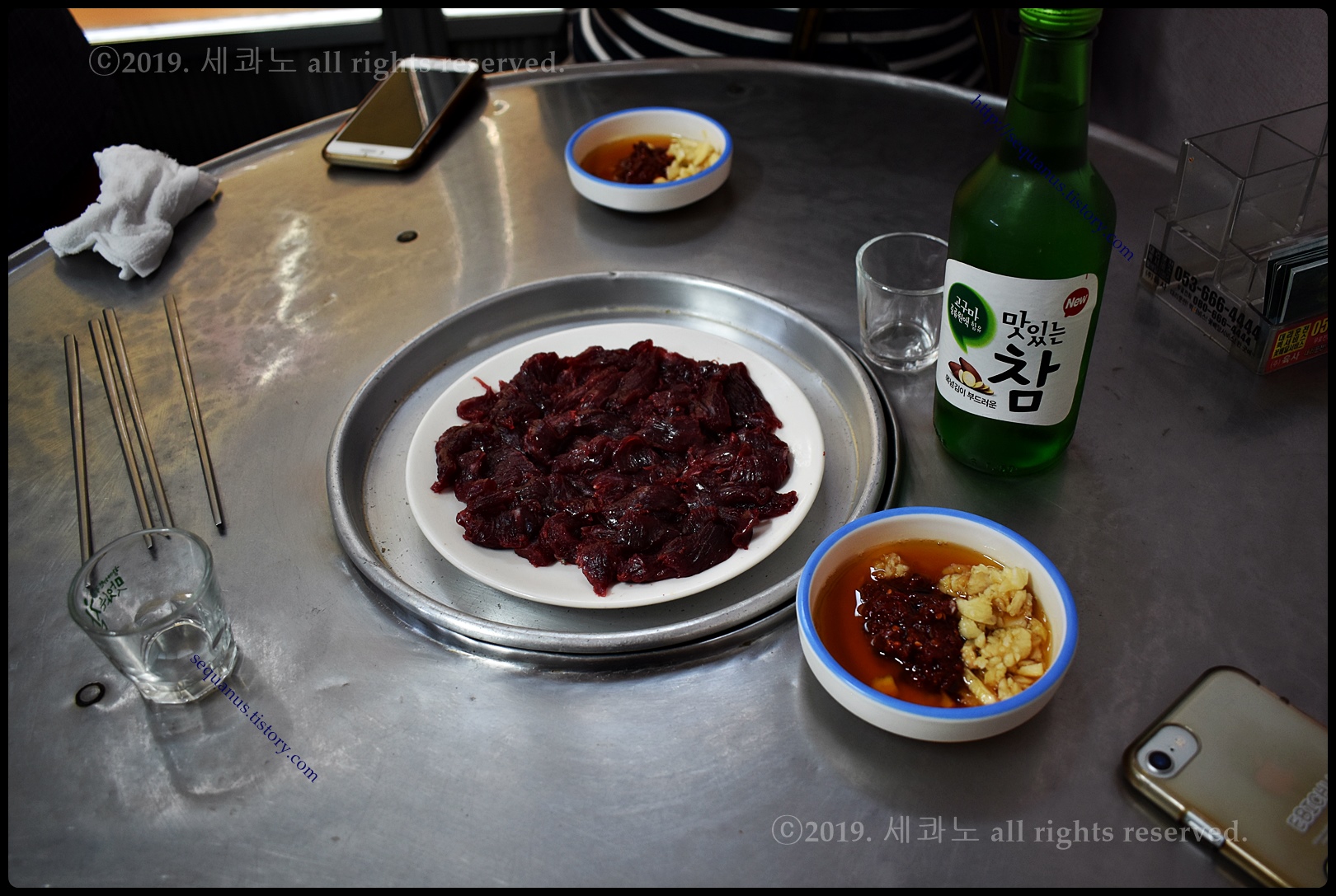 간판에는 생고기와 육회, 그리고 양지머리 등도 있는 것 같지만
