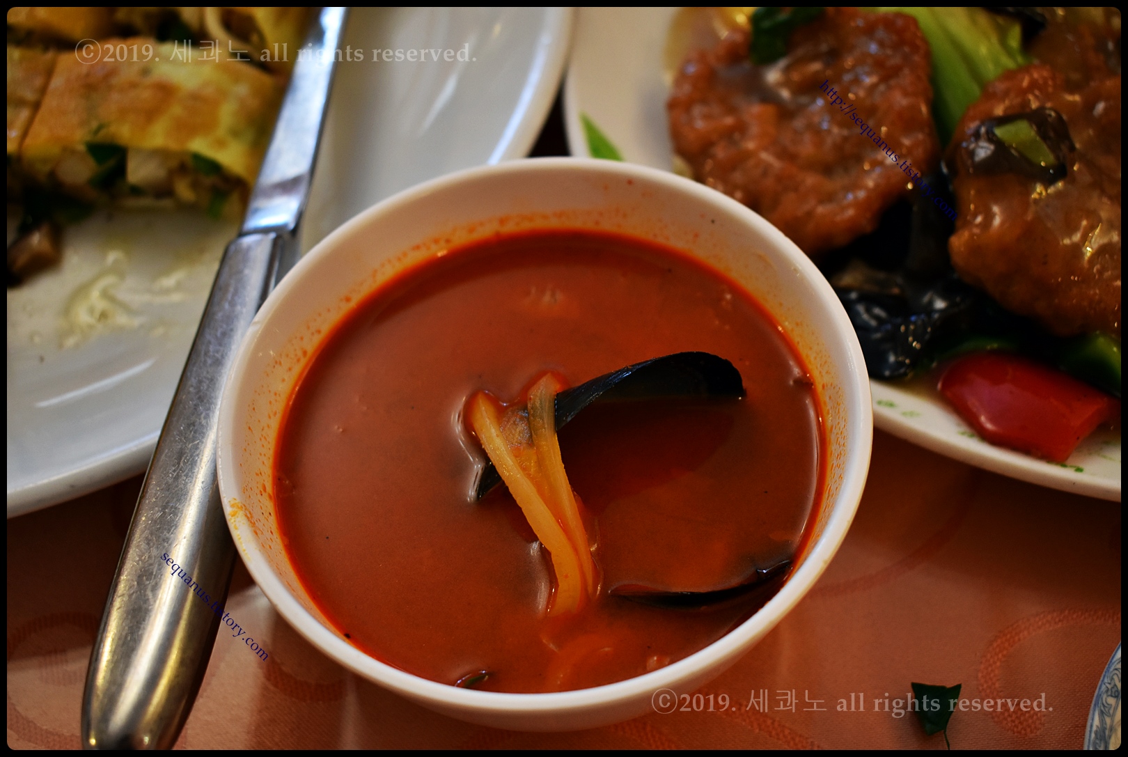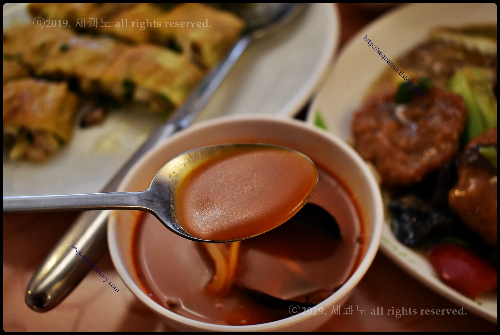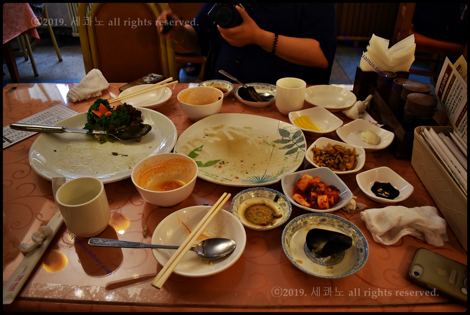 그리고 테이블의 고춧가루, 식초, 간장 등이야