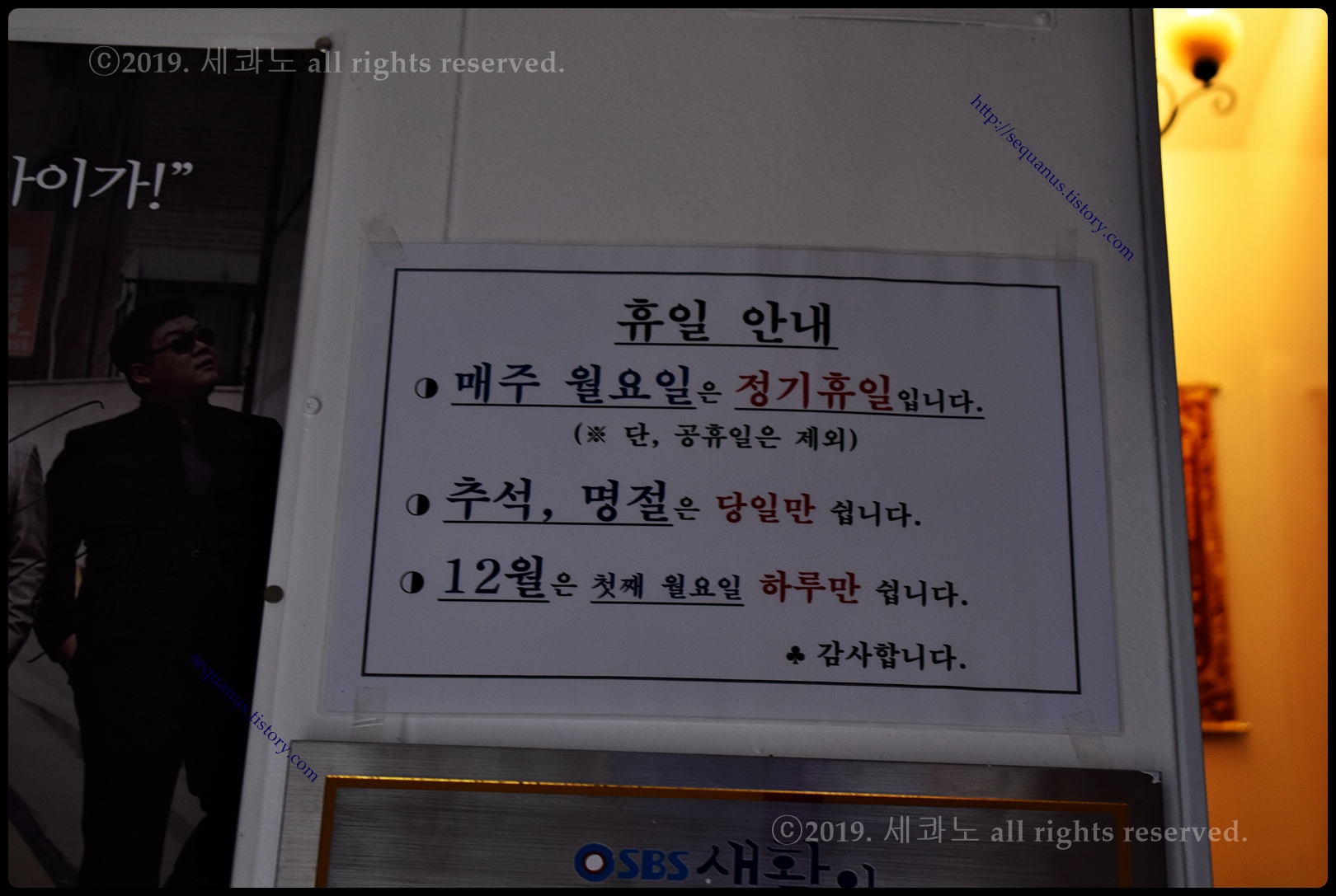 매주 월요일이 정기휴무(공휴일, 12월 제외)