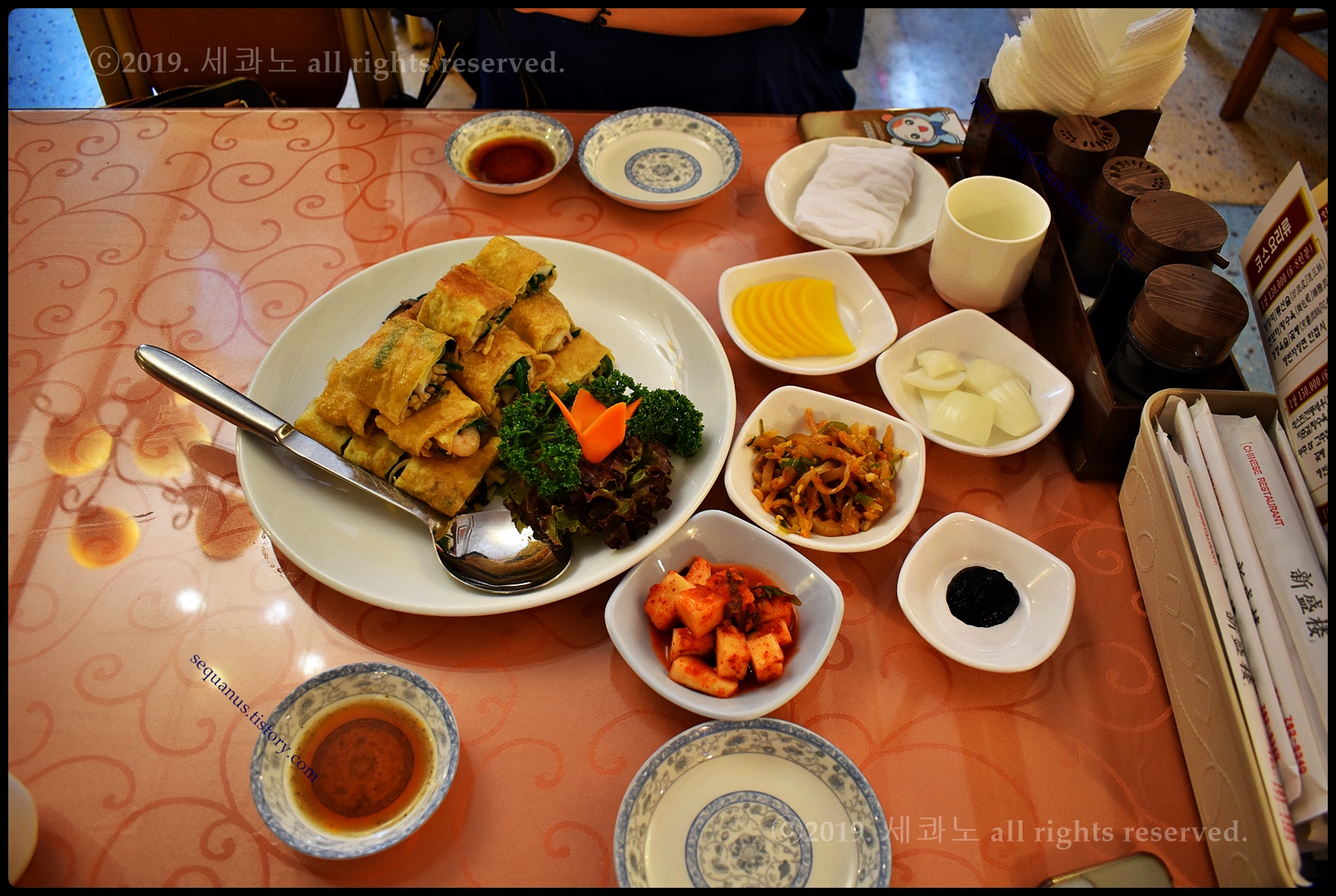 그리고 테이블의 고춧가루, 식초, 간장 등이야