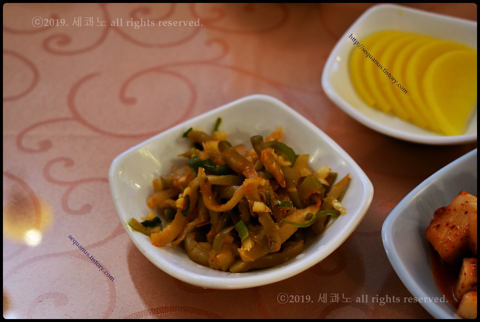 주문 전후로 기본찬이 깔리고