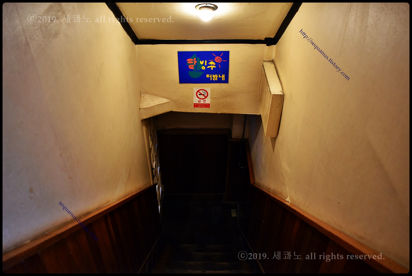 좁은 계단을 내려가면 나오는 공간