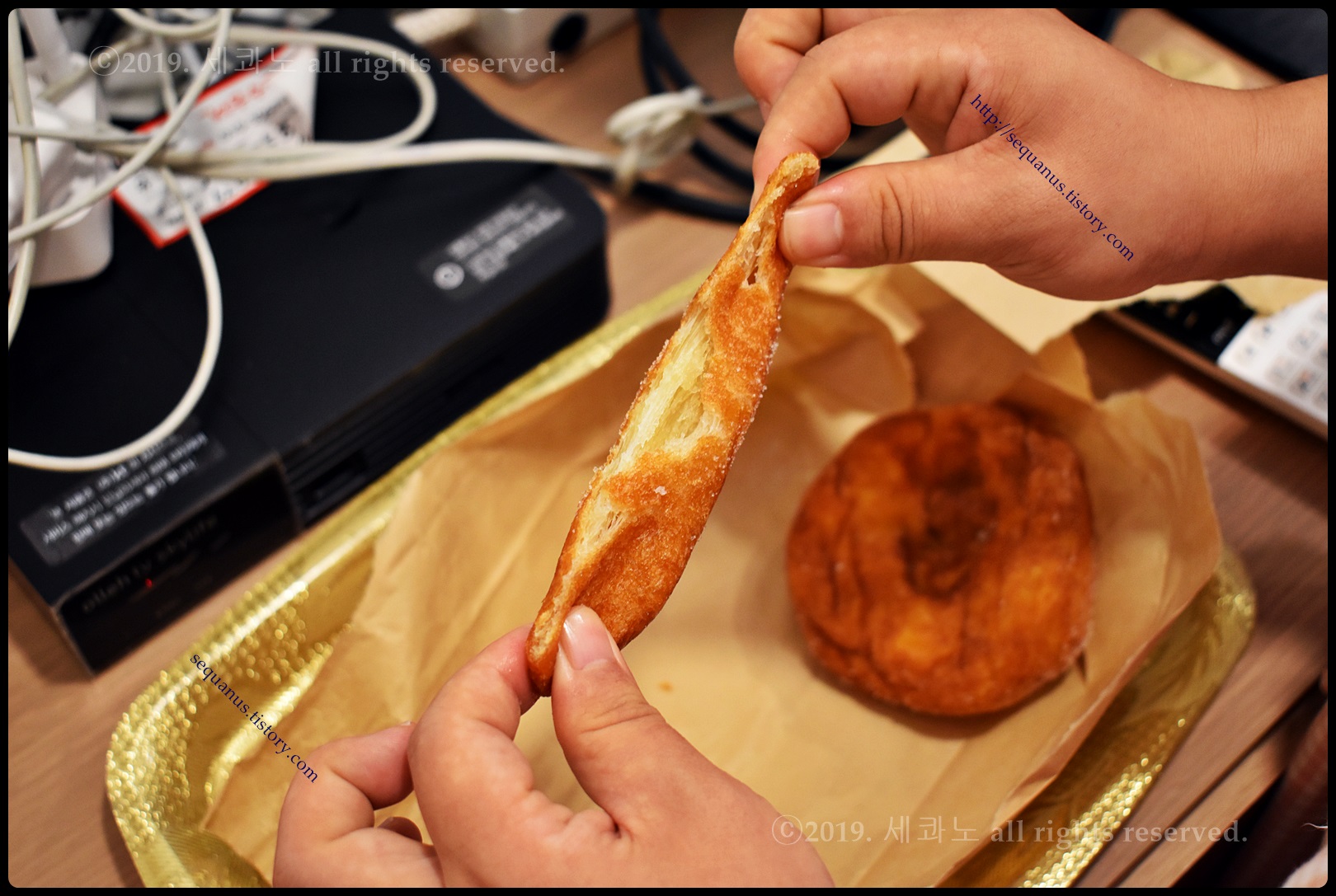 거기에 꽈배기 중 한 개는 설탕 묻히지 말아 달라고 요청했다.