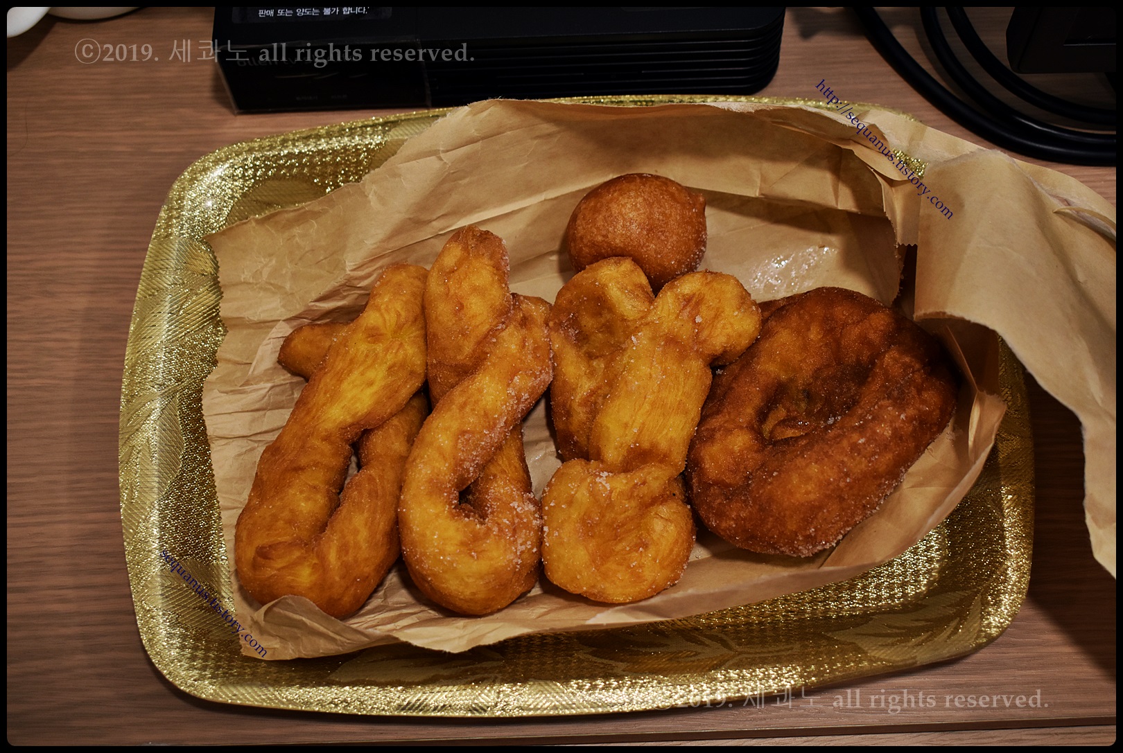 거기에 꽈배기 중 한 개는 설탕 묻히지 말아 달라고 요청했다.