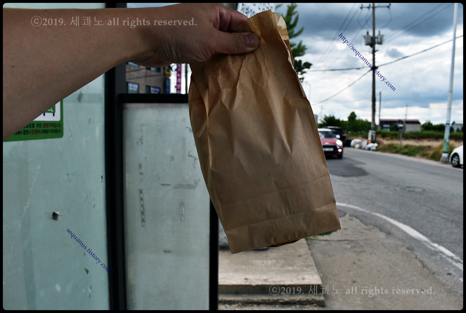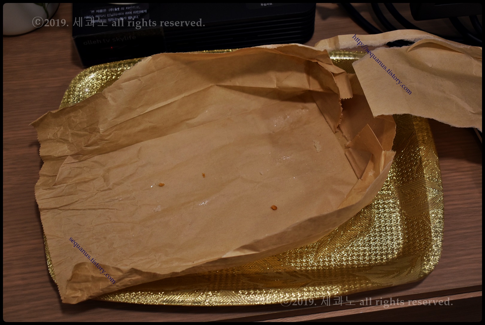 이동 시간,, 포장하고 약 1시간 반 정도 지난 뒤에 먹은 것이다.