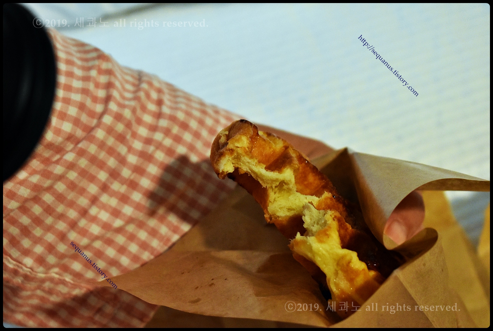 오리지널 와플 하나를 포장해 가서 같이 즐겼다.