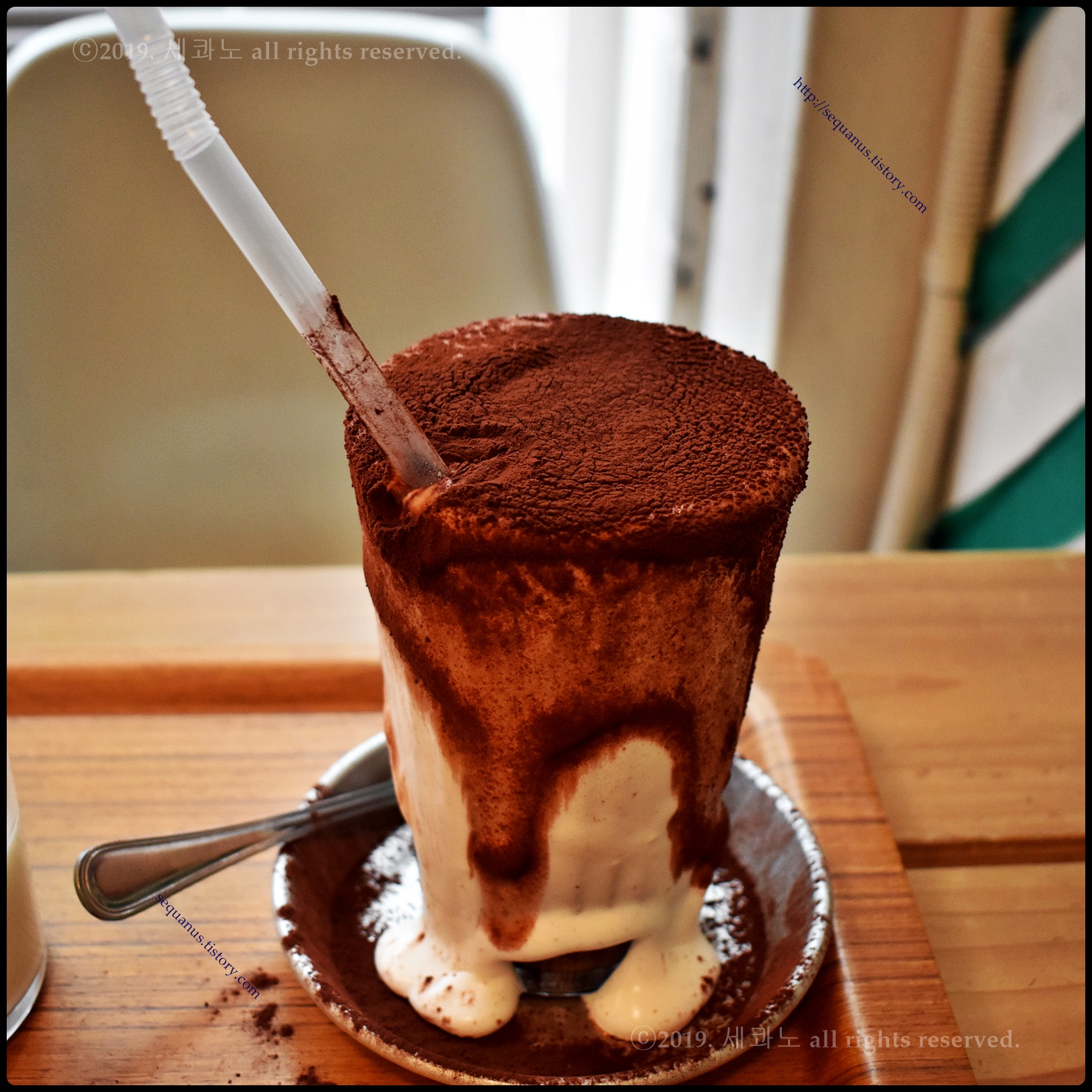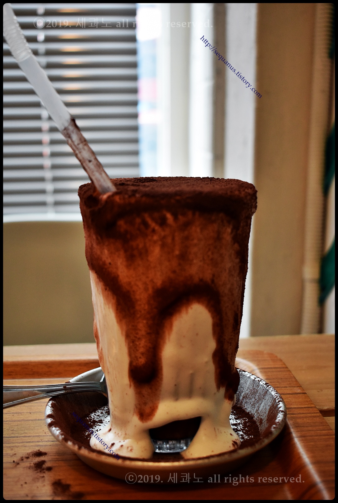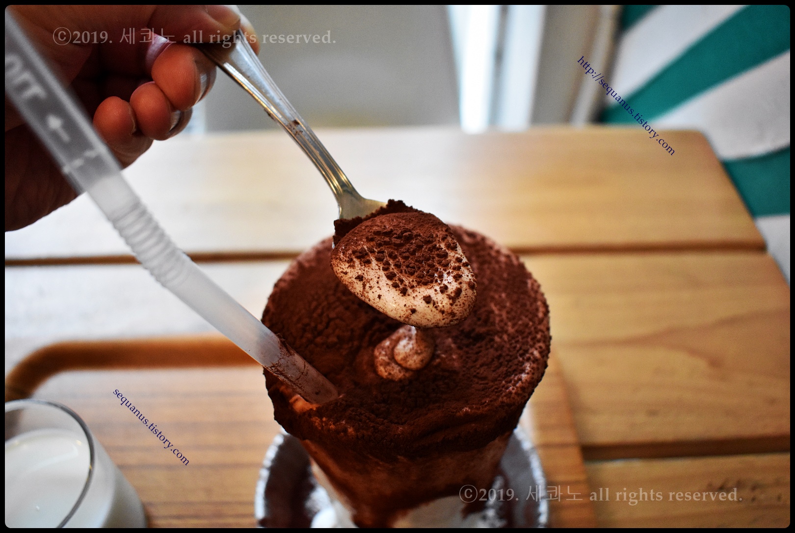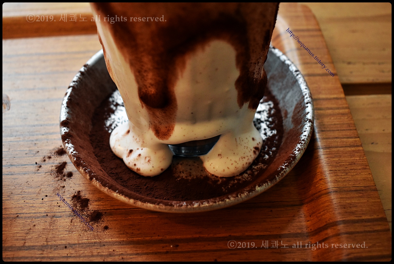 위에 있는 코코아 파우더가 같이 흘러내리고