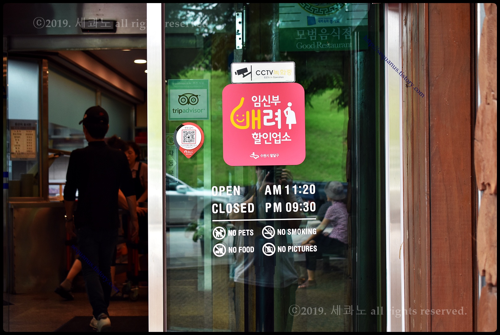 가게 입구에 임신부 배려 할인 업소 스티커가 붙어 있었다.