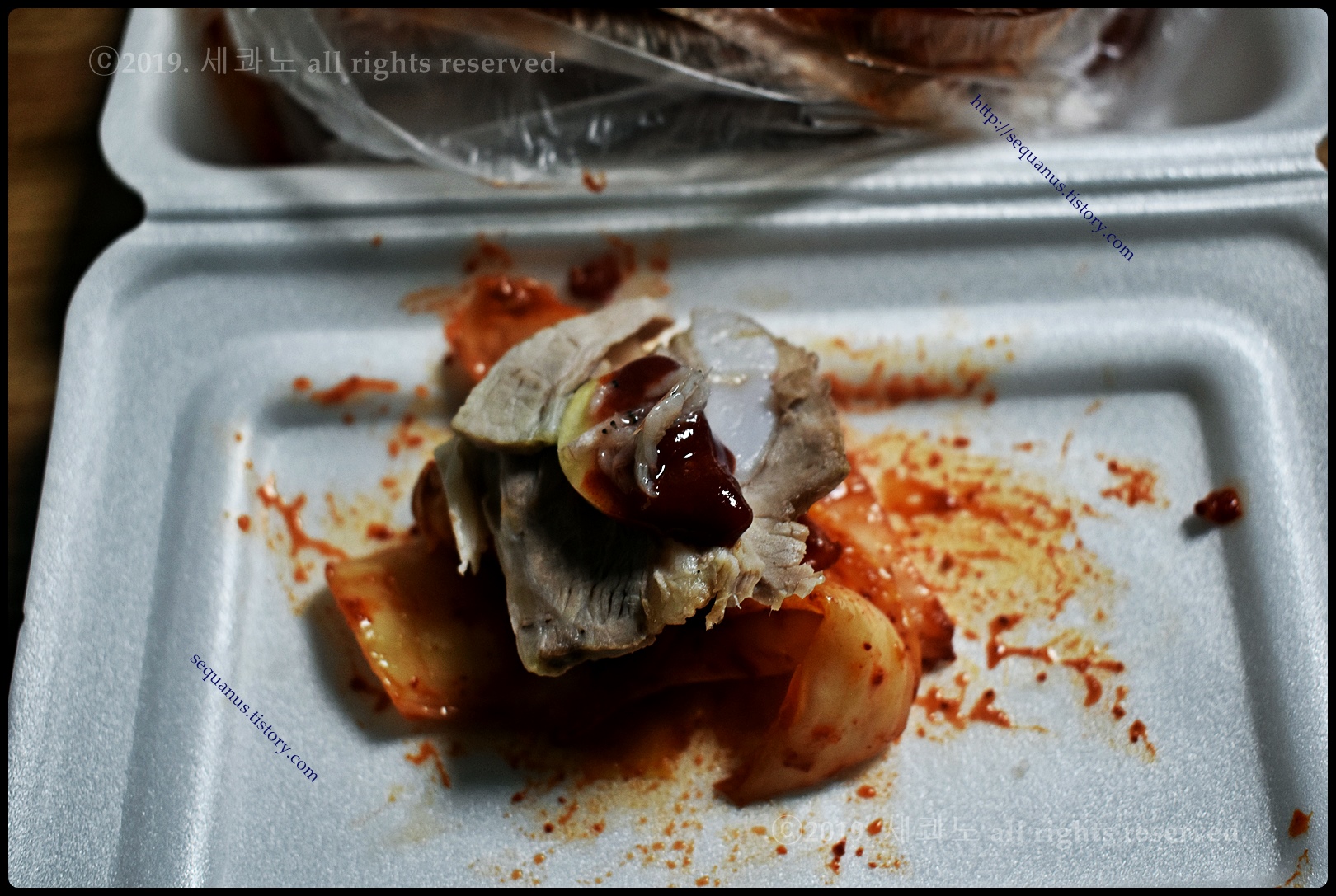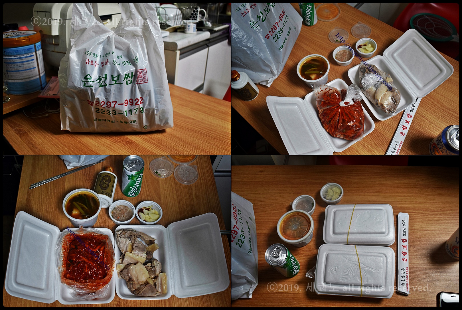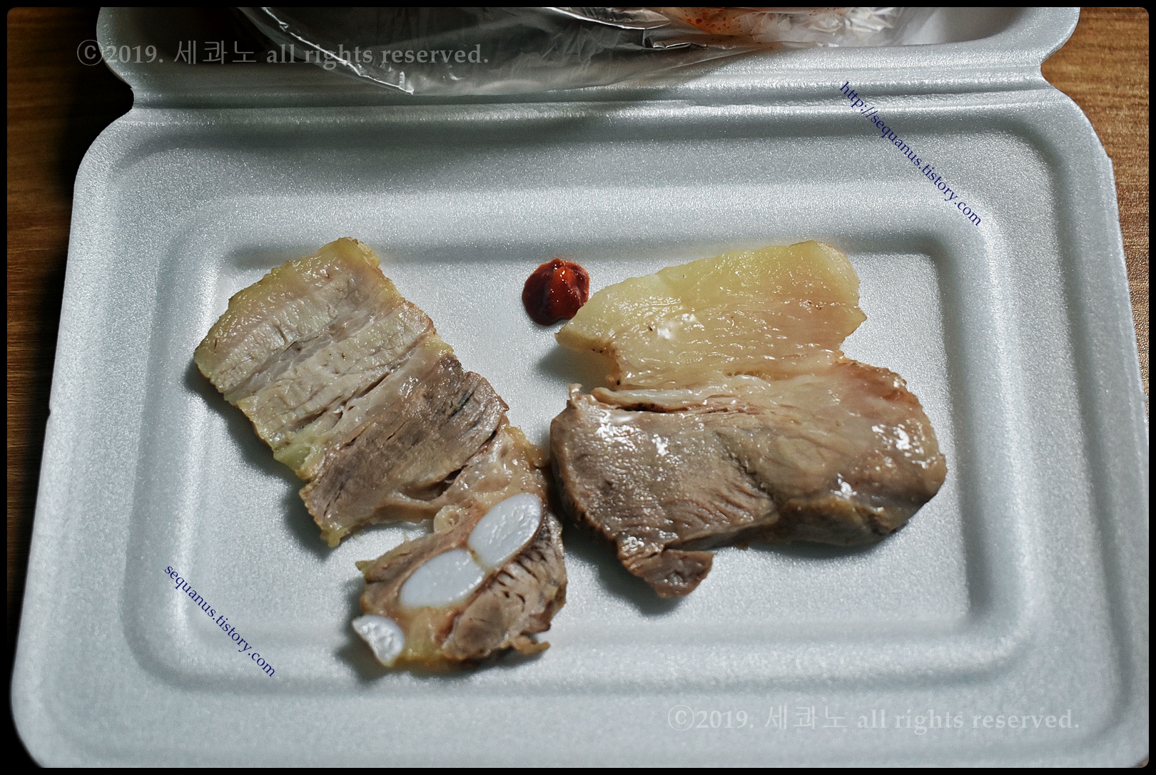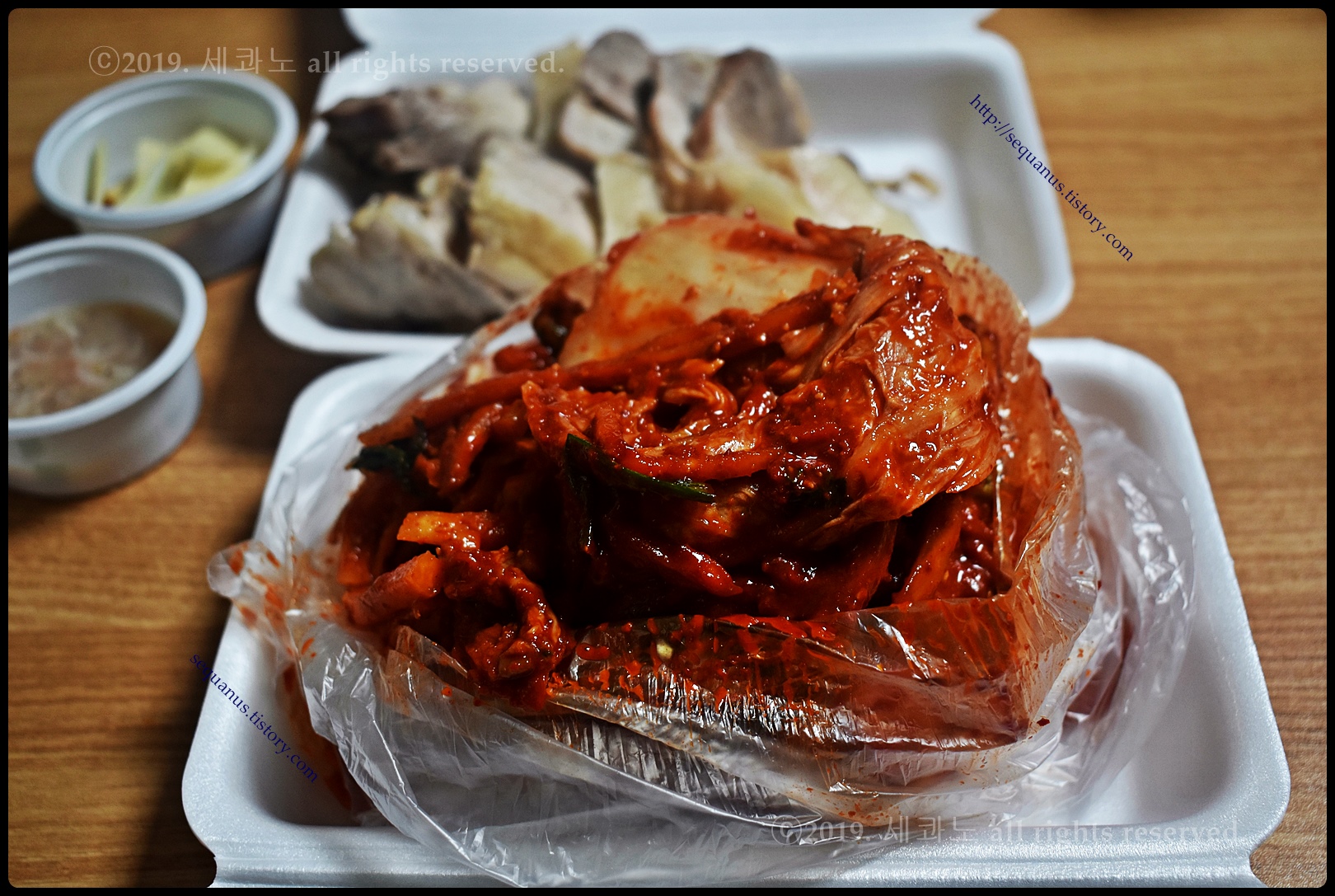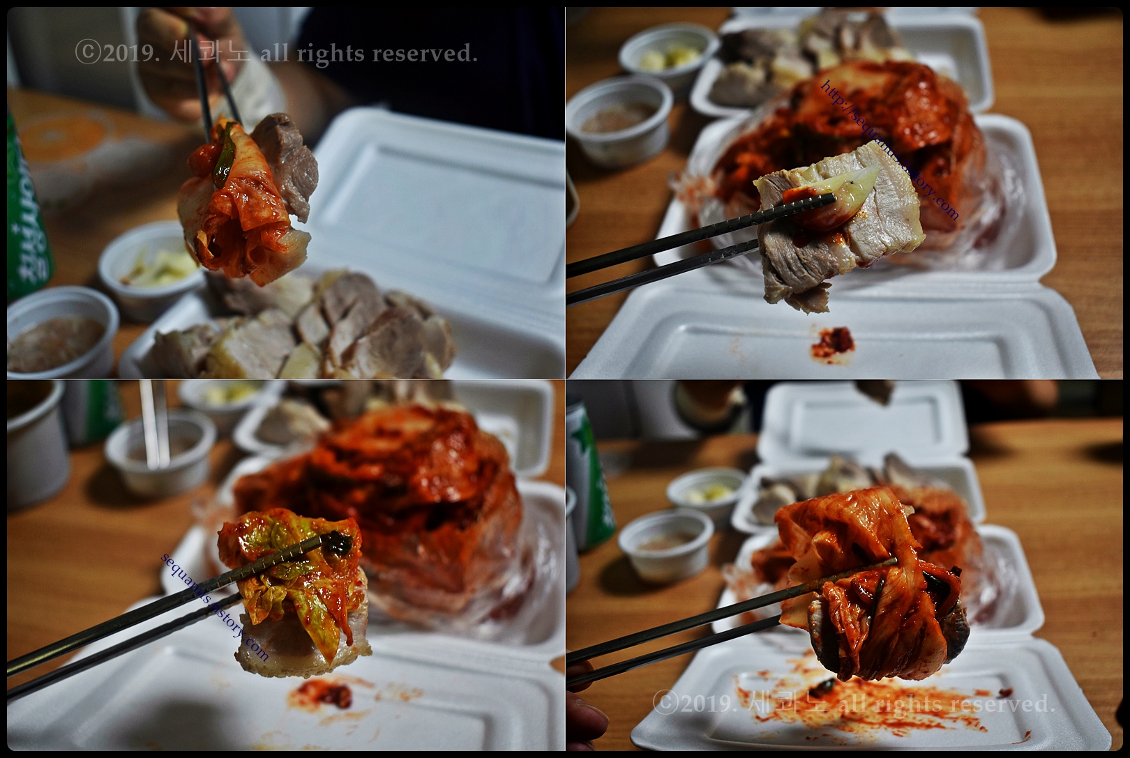 위쪽(좌측)이 삼겹 보쌈이고, 아래쪽(우측)이 은성 보쌈이다.