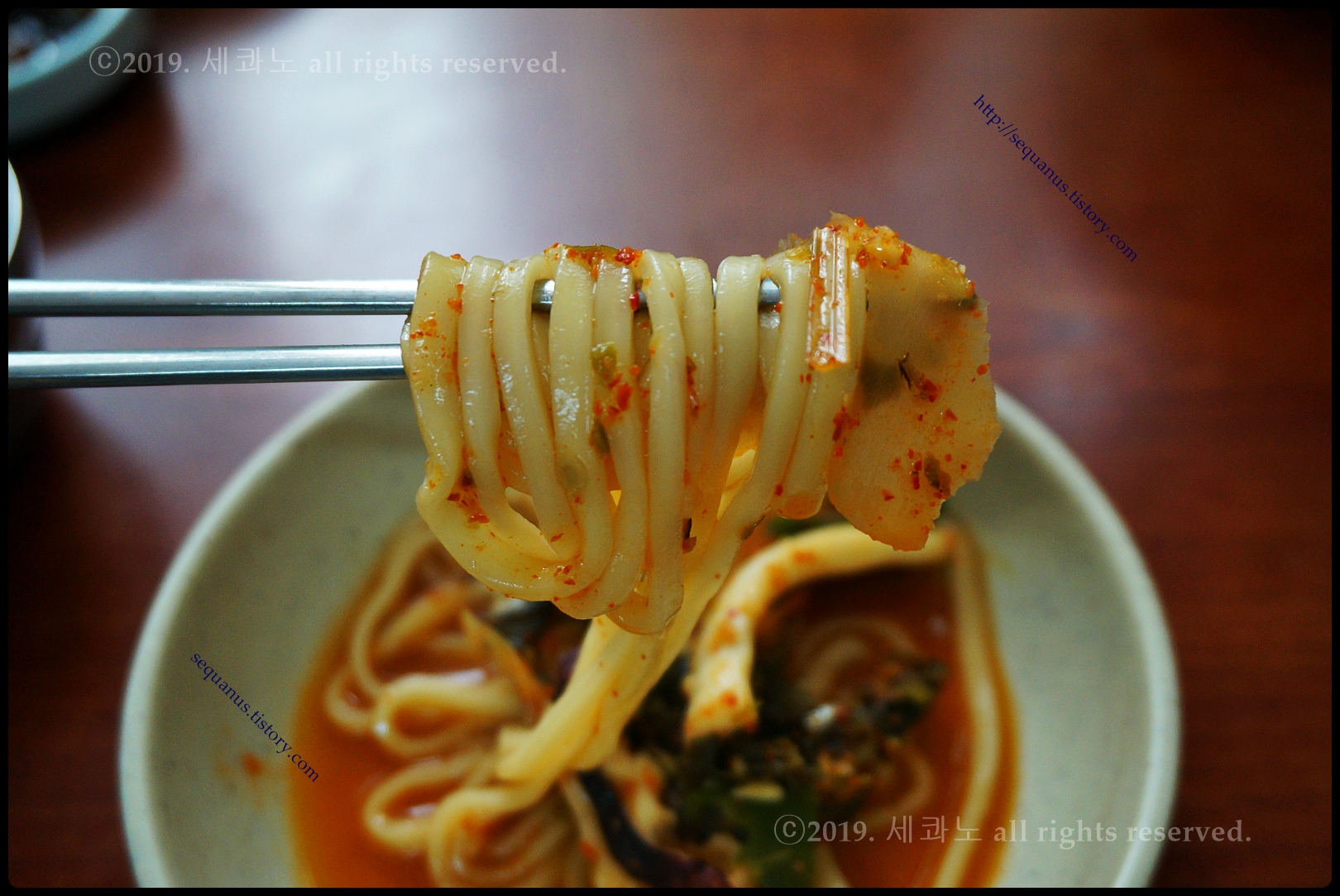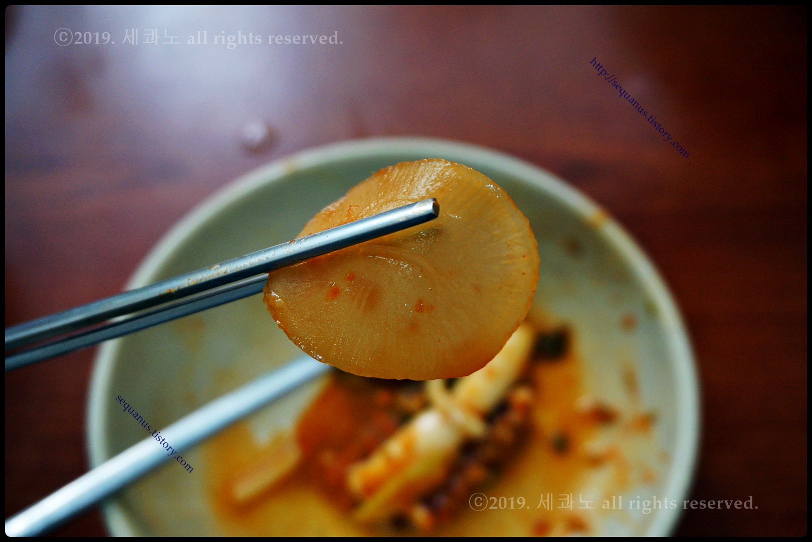 그래서 무 특유의 시원함이 오징어 찌개 국수에 더해진 것 같고