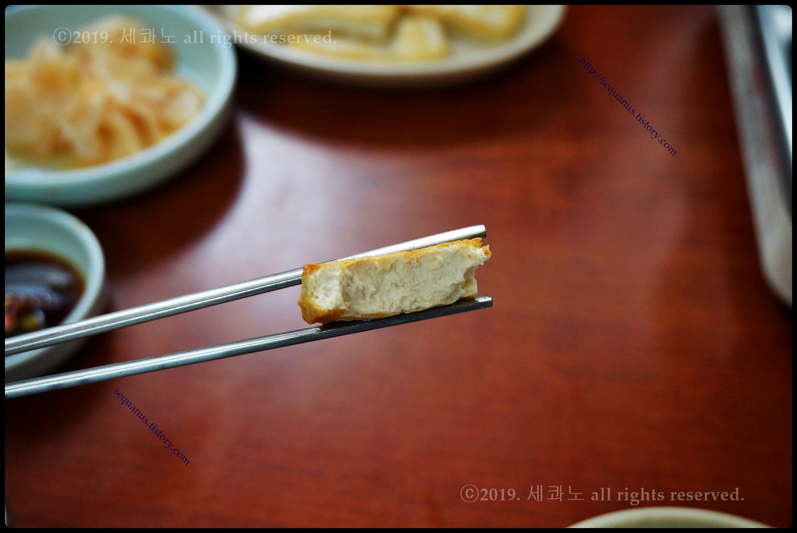 우선 두부에 양념간장 찍어서 한 입 맛을 보았다.