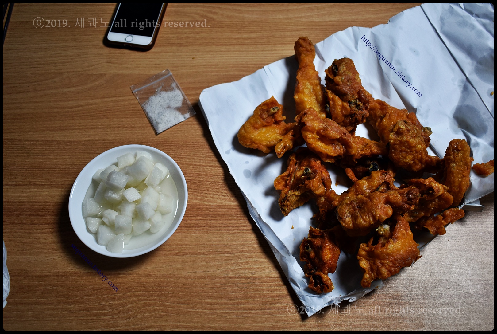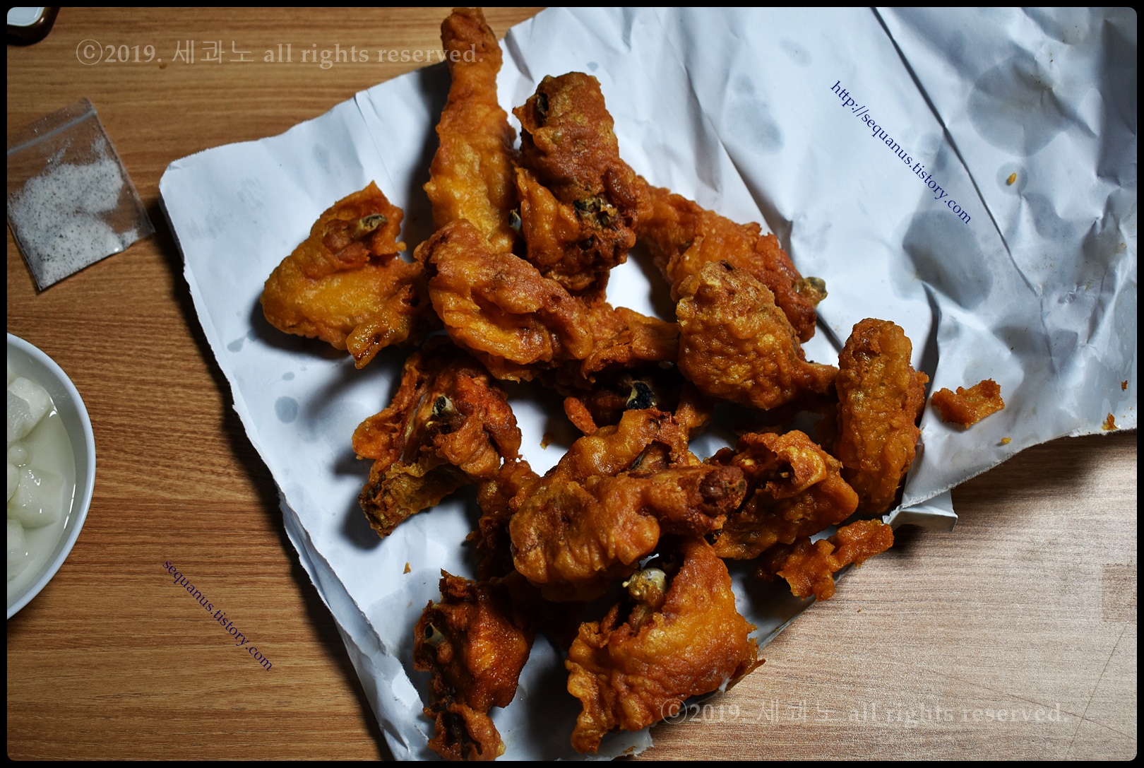 그냥 치킨만 즐기기에는 좀 짜고 딱딱하다.