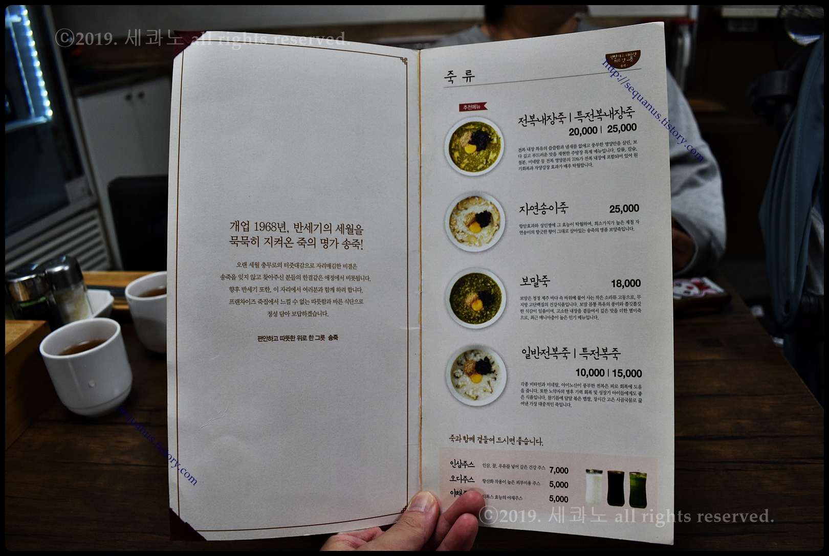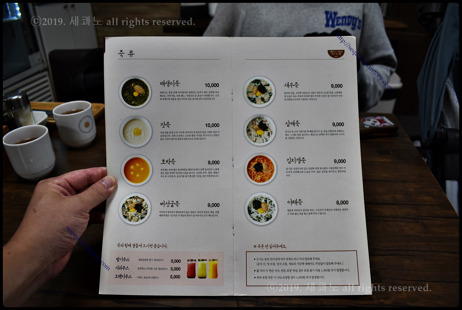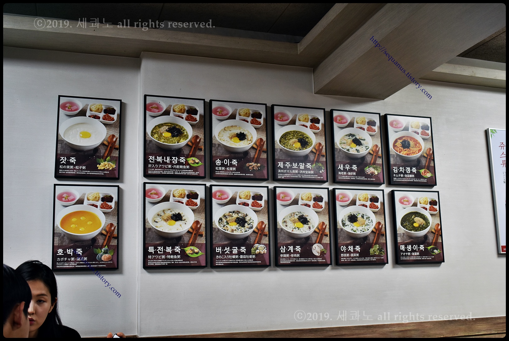 메뉴판에 있는 죽 설명 몇 개만 옮겨보면