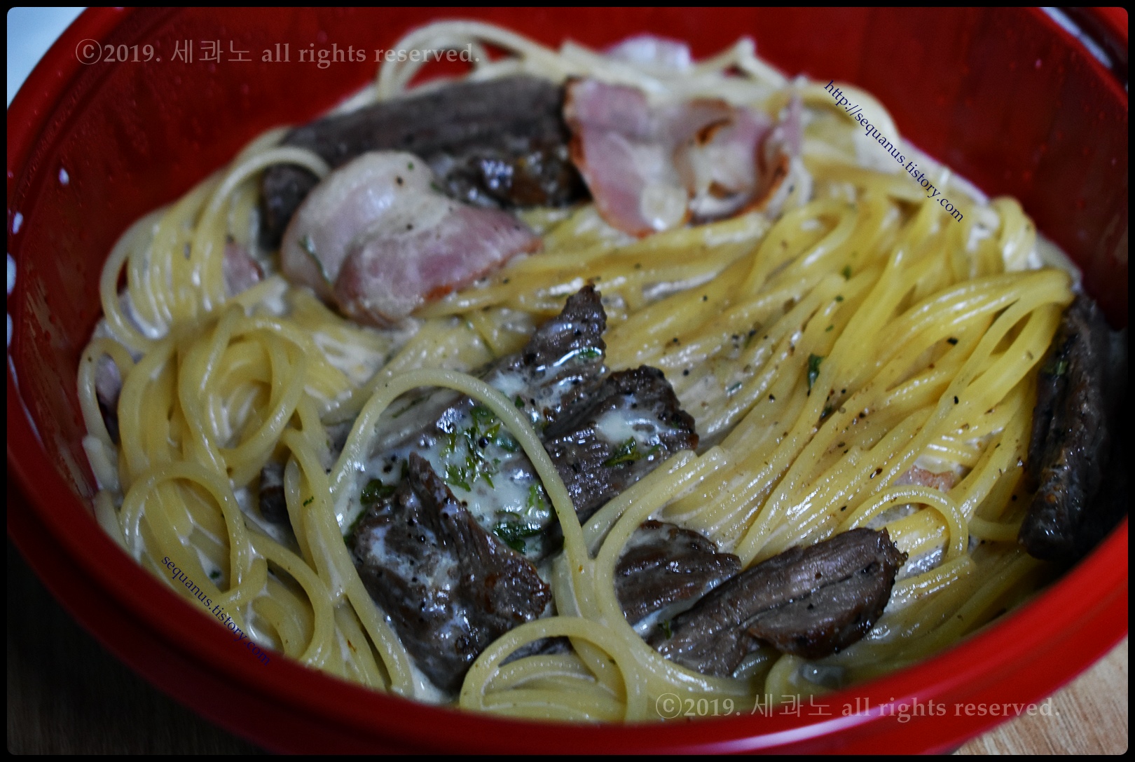 크림 파스타를 연어와 함께 먹은 것이었다.