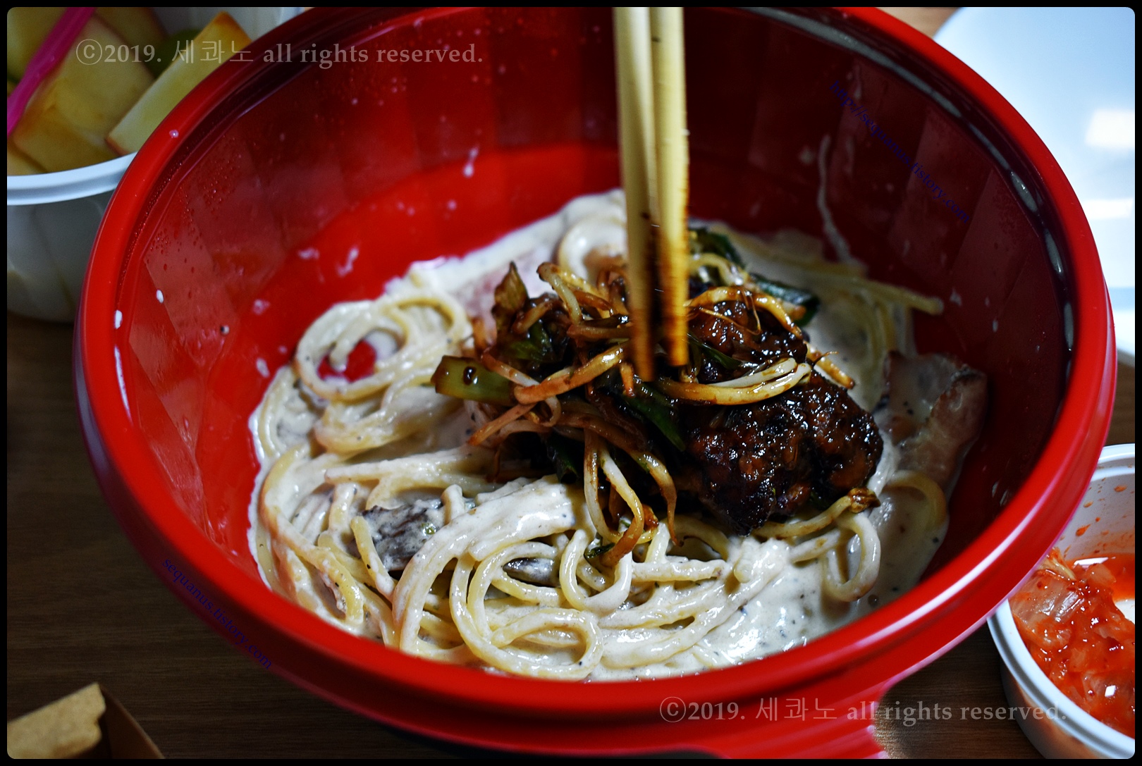 면이 크림을 흡수해서 그런지 더 꾸덕해졌다.