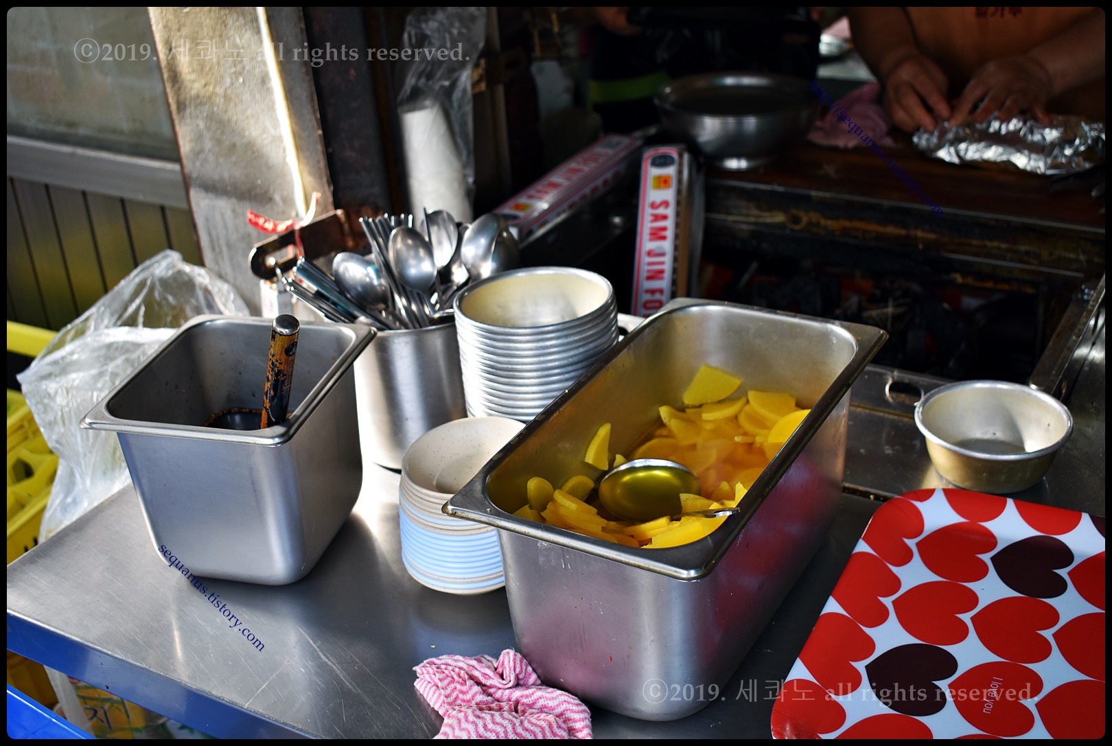 한쪽에는 단무지와 앞접시,