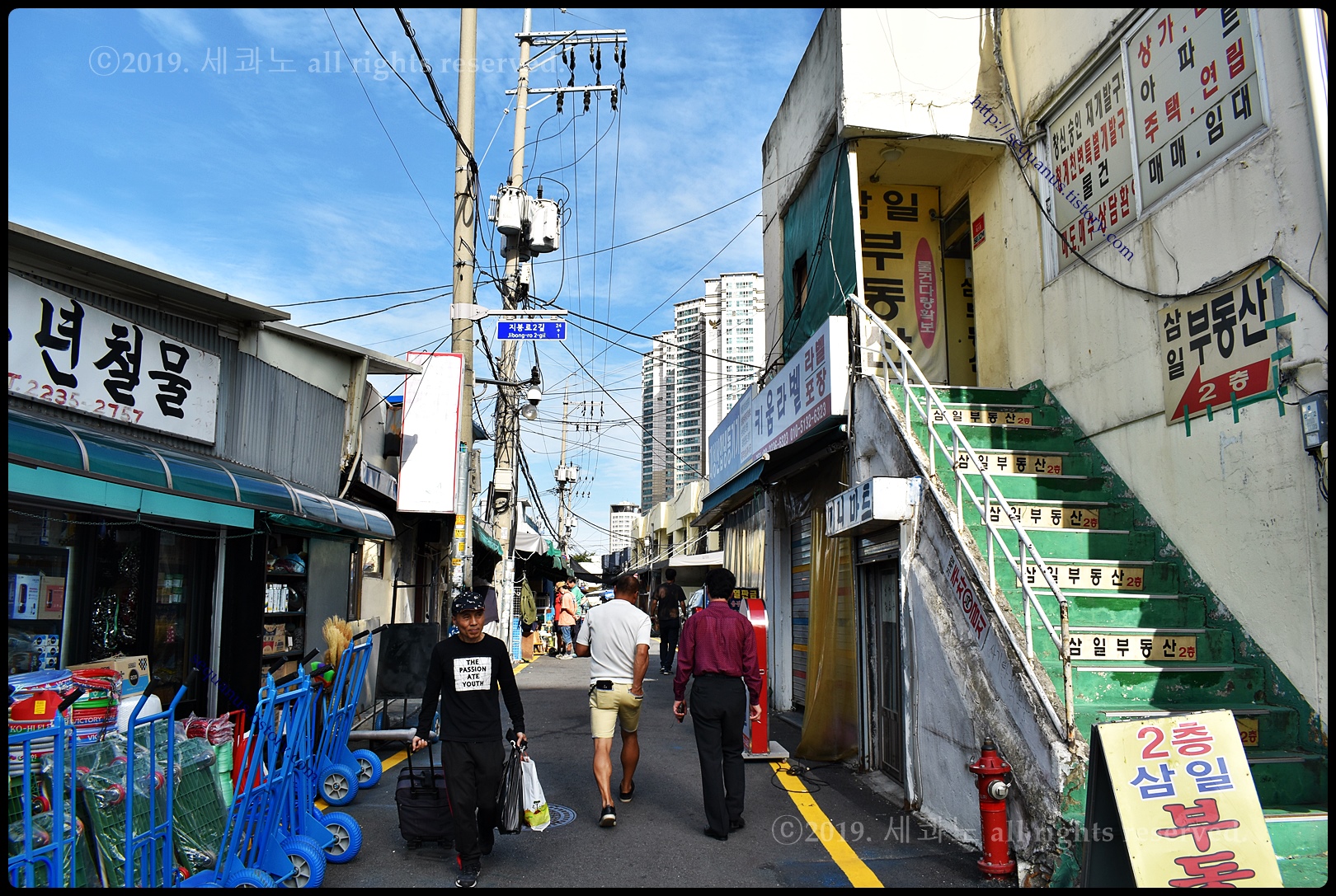 미니마트, 삼일부동산(우) 사이 골목이다.