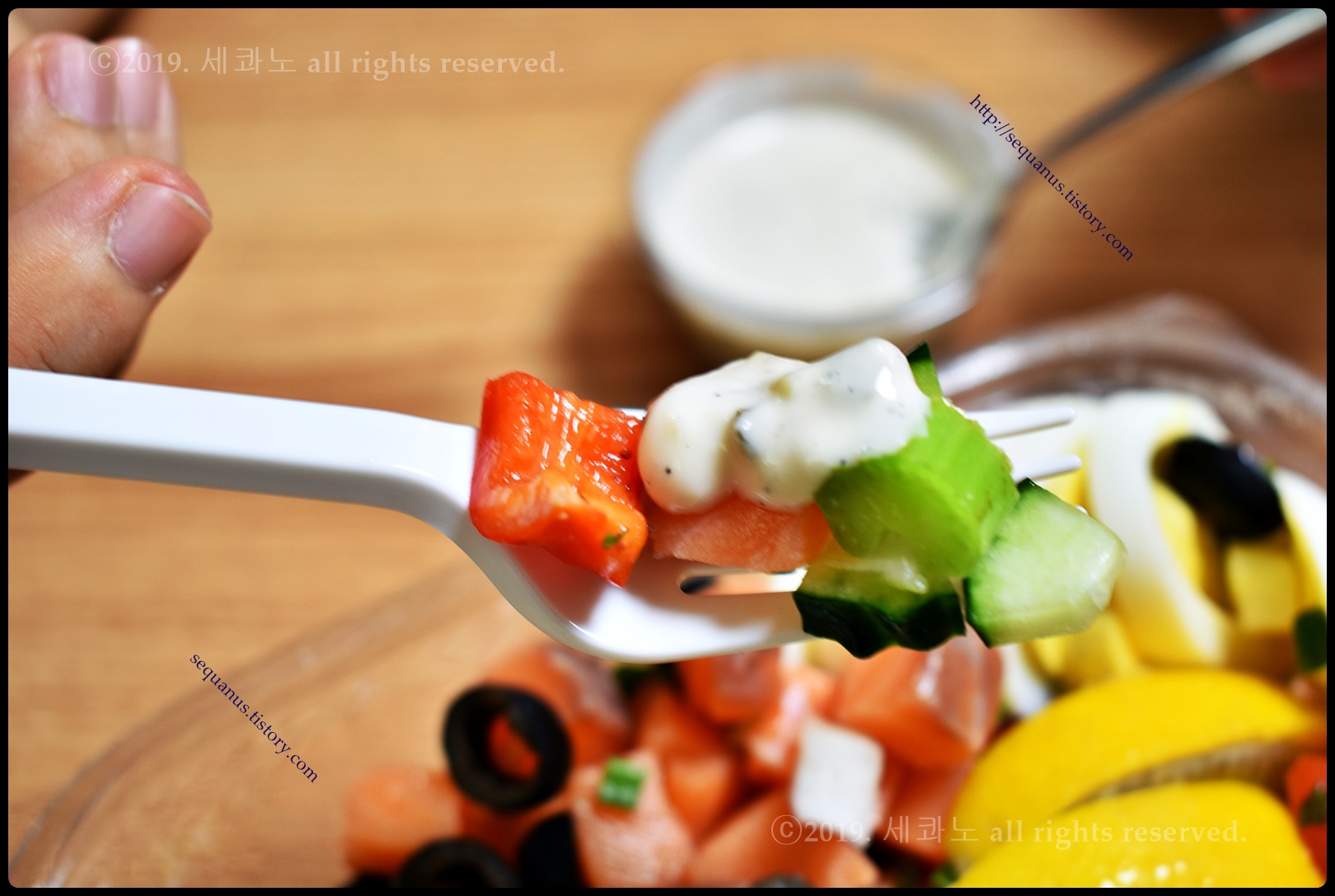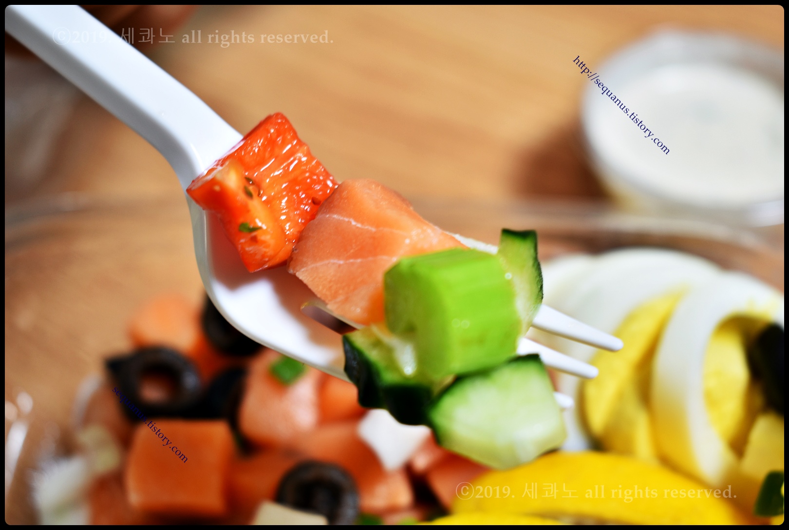 (코스트코 연어가 좋다기보다, 연어 샐러드의 연어가 딱히.. 에 가깝다.)