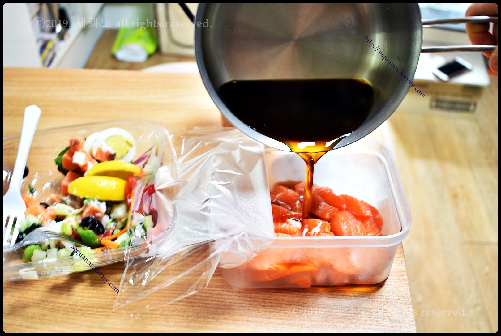 위 사진은 때마침 연어장을 만드는 과정이랄까? ㅋㅋㅋ