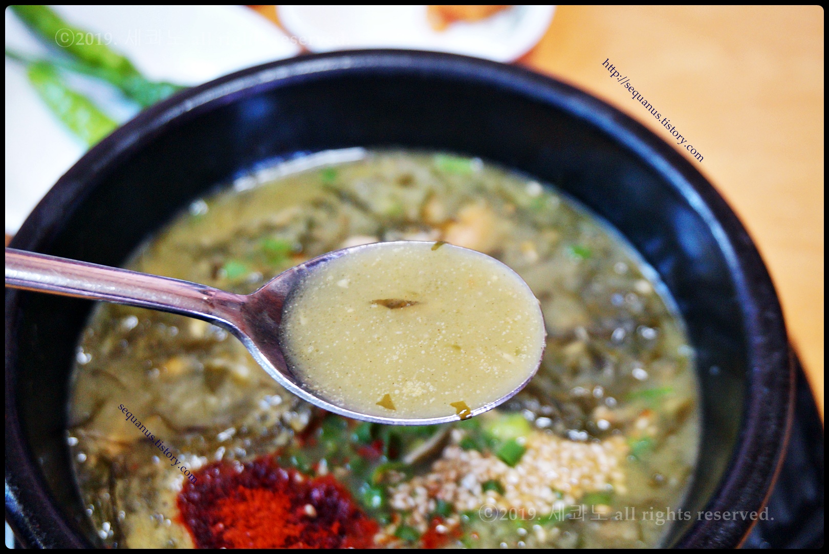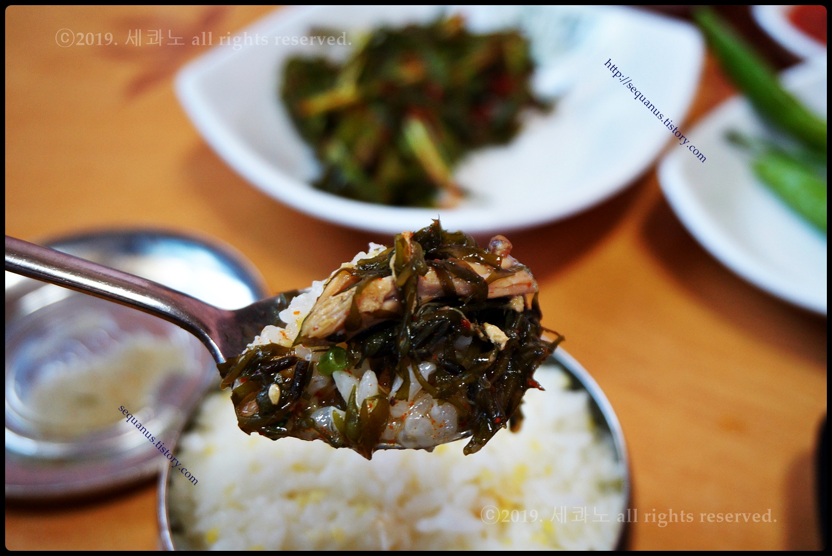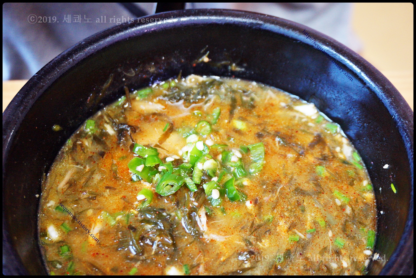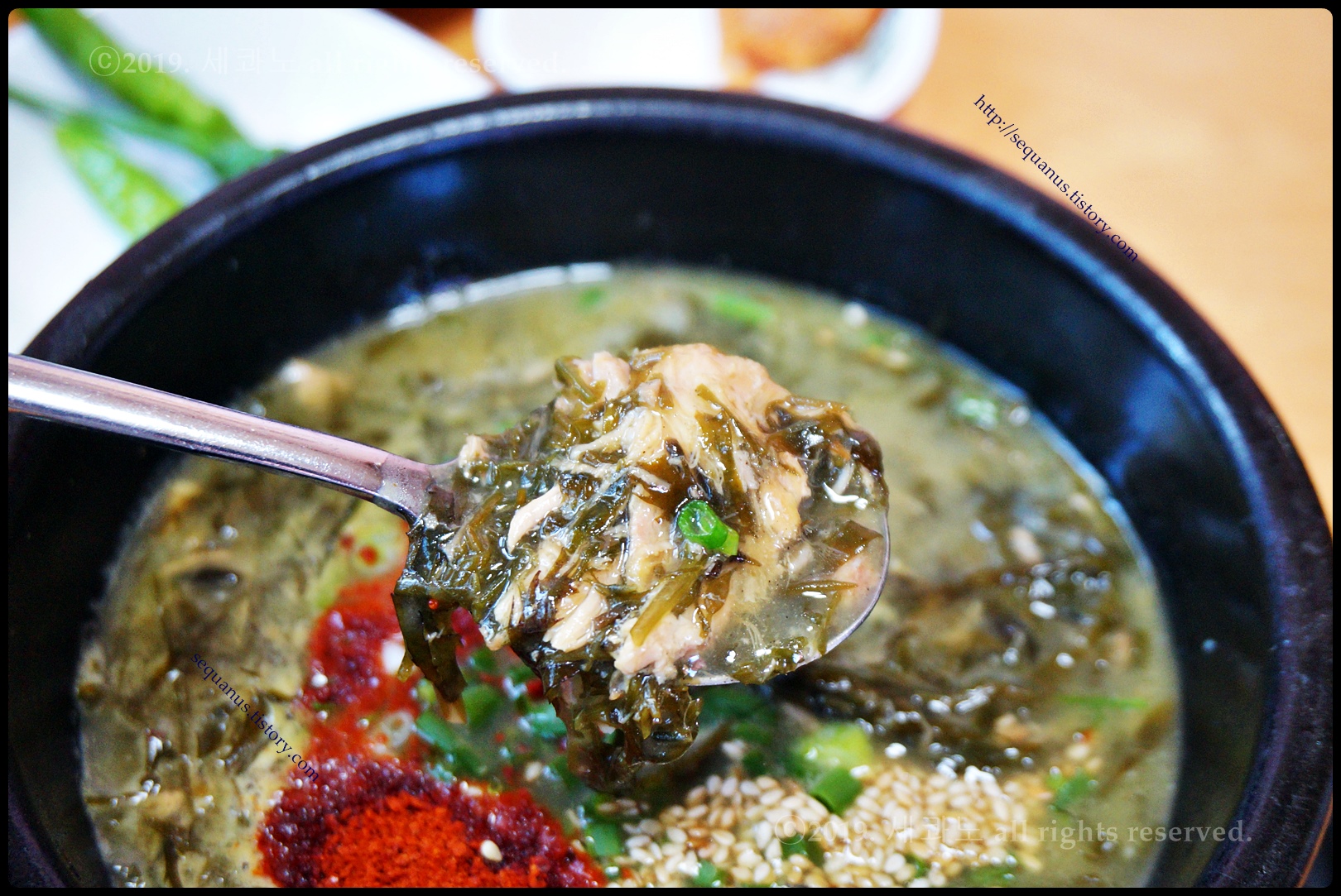구수하고 새콤하게 씹히는 김치와 해초 맛이 어우러져