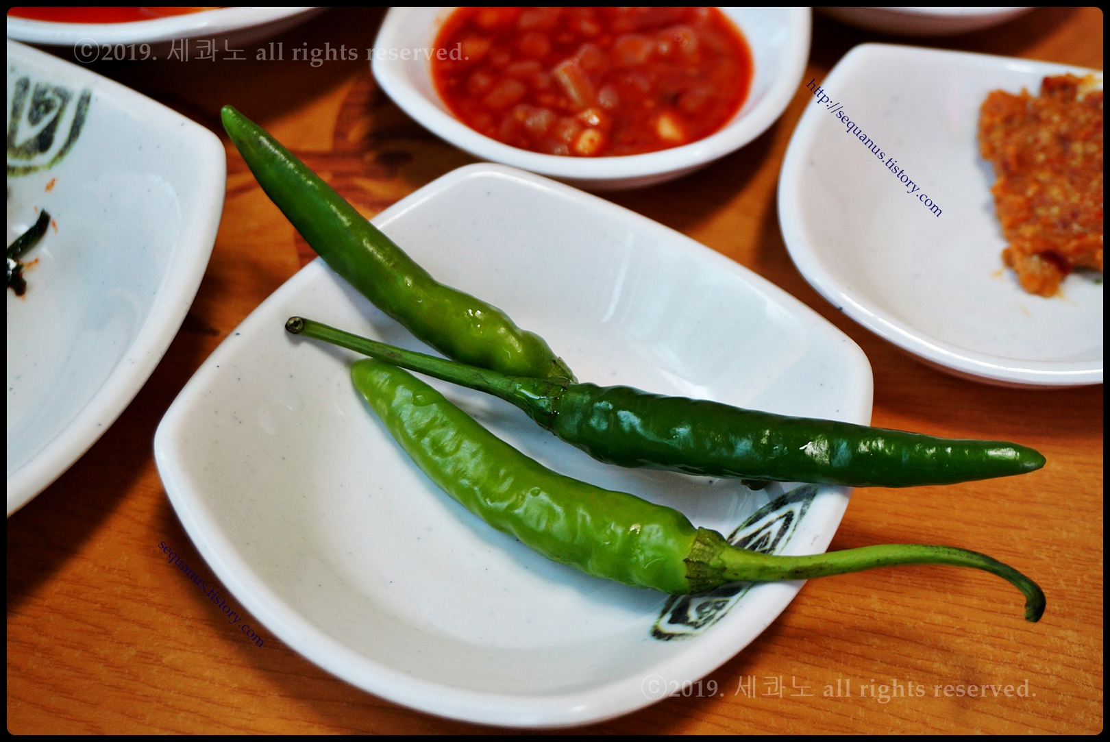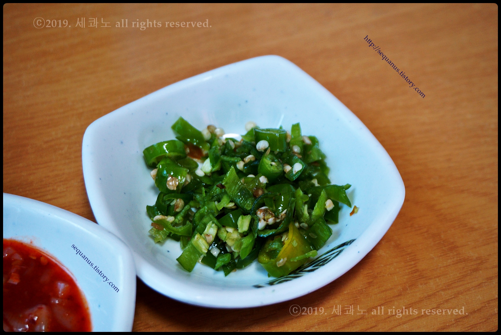 두 번째로는 거기에 청양고추를 올려 먹어보았다.