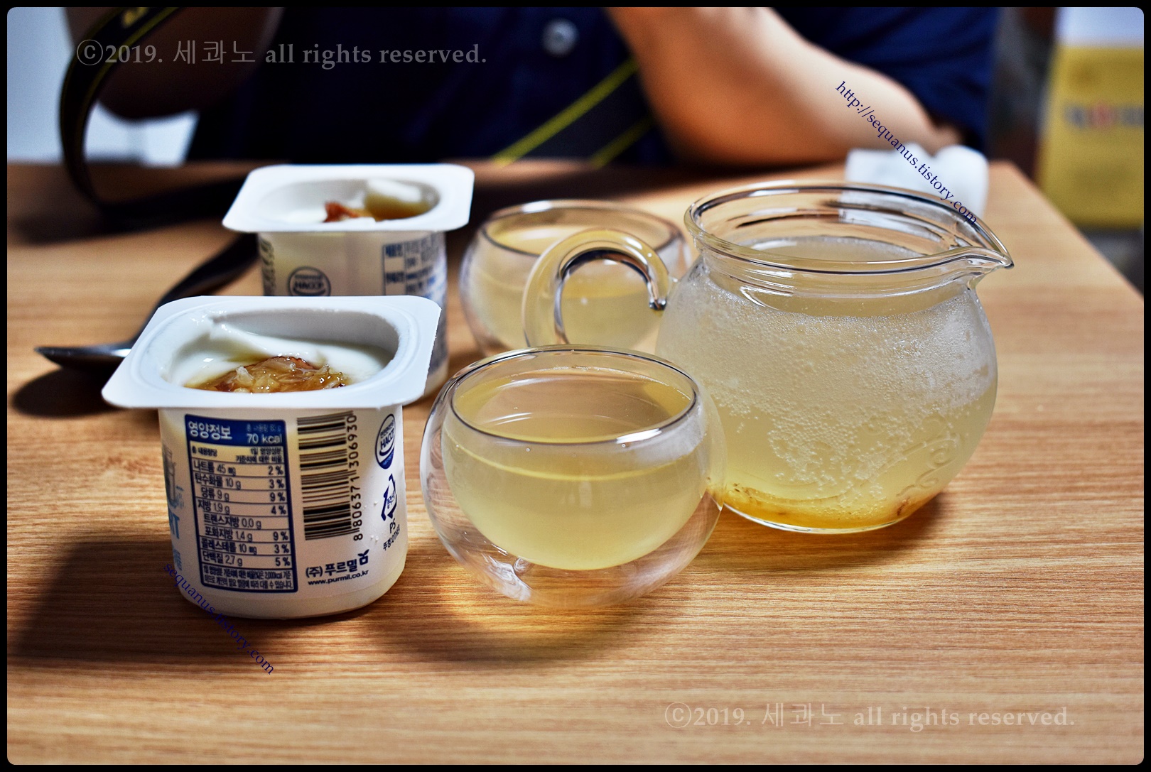 차로 마시기 위한 따뜻한 물(사진에는 없고 옆에서 끓이고 있었다 ㅋ)