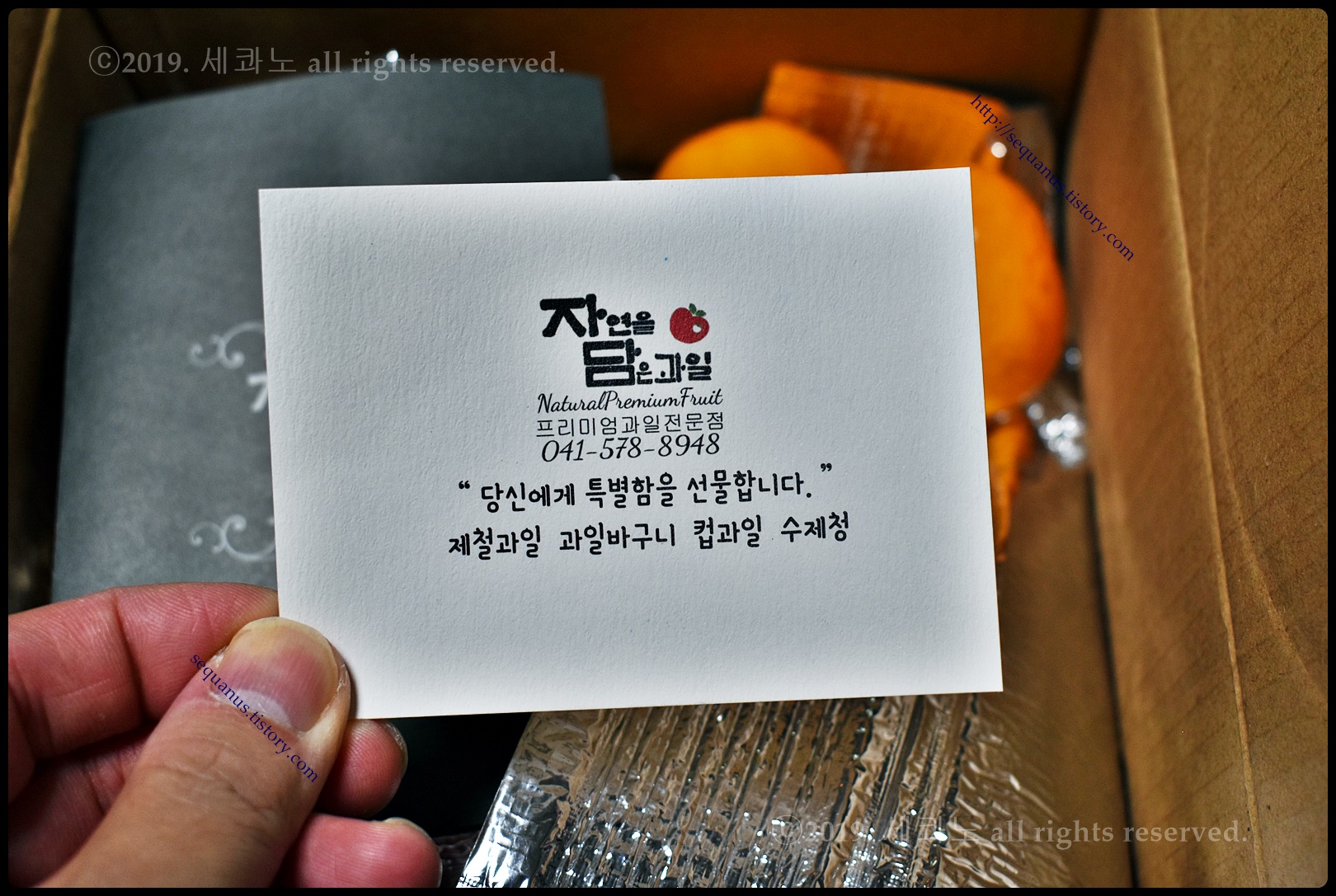 직접 쓴 캘리그래피 카드가 든 과일 바구니까지