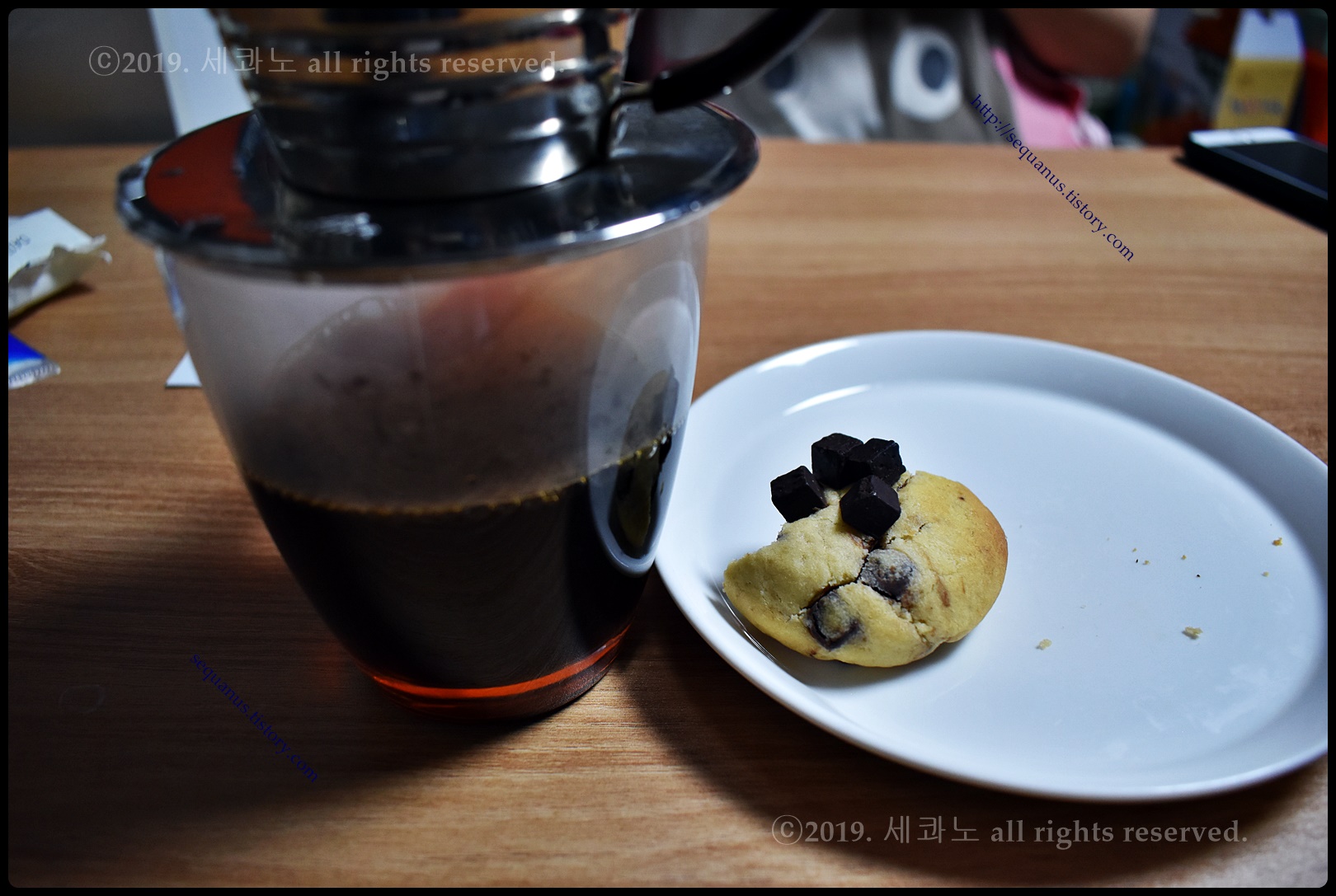 초코칩 쿠키를 직접 내린 커피와 마시는 것이