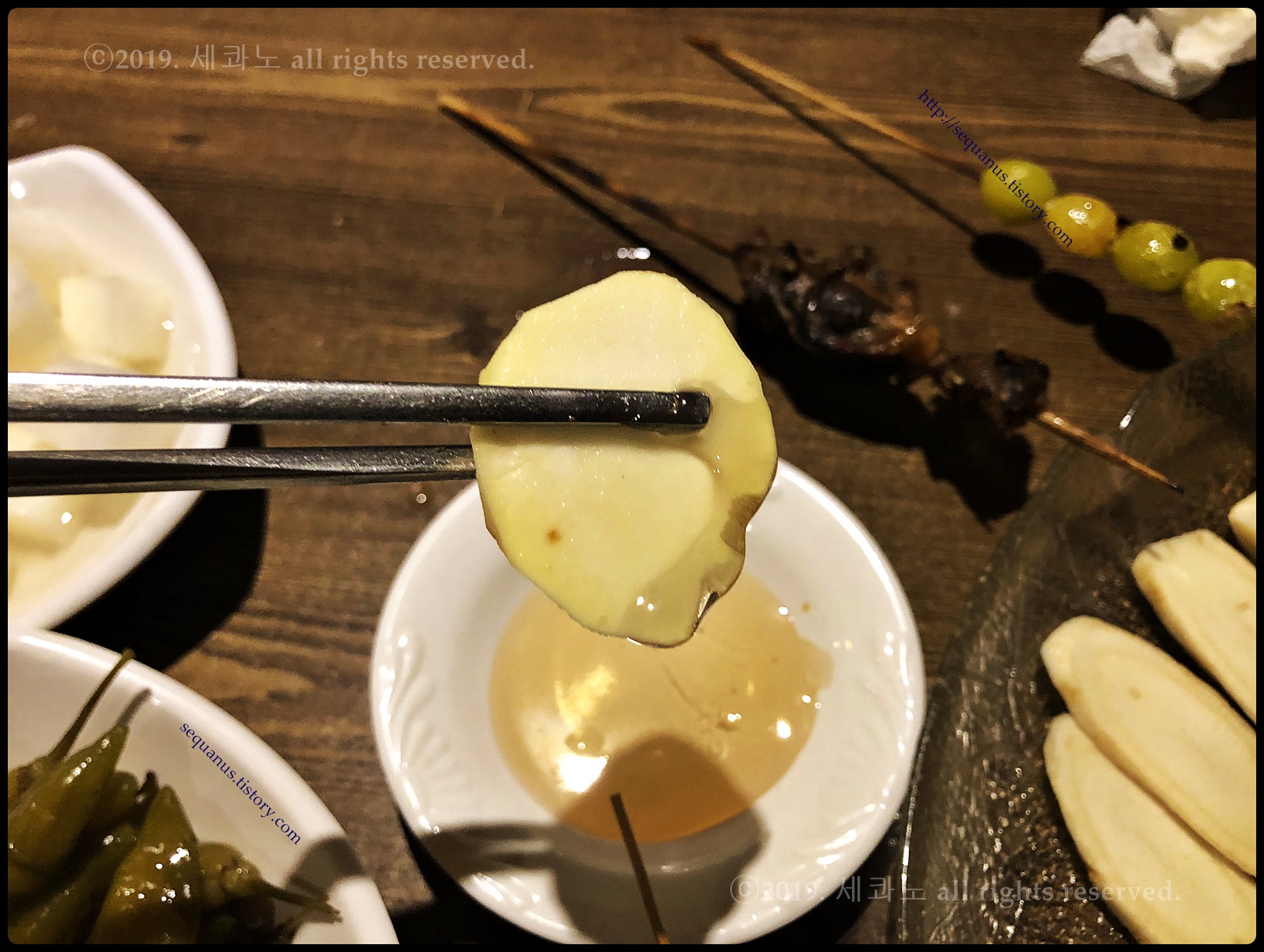 같이 시킨 생율, 밤부터 꿀이나 한 번 찍어 먹어주고