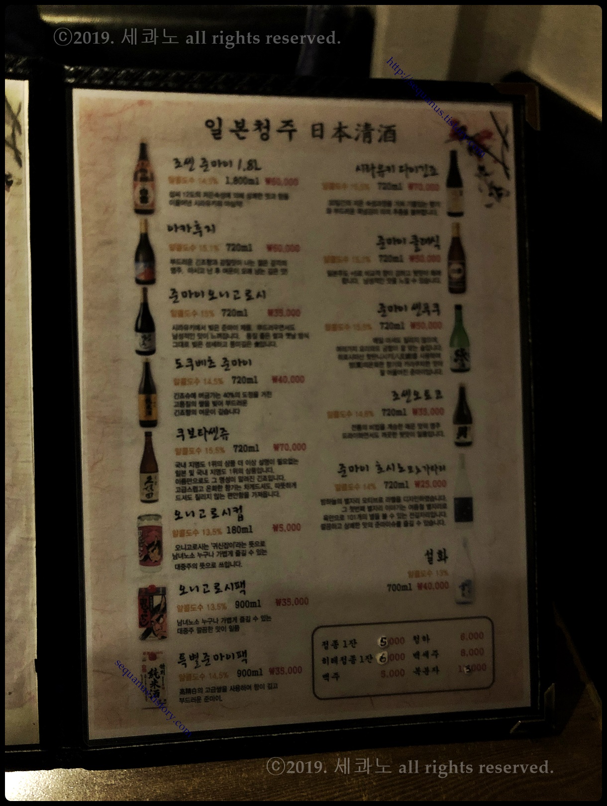 메뉴판을 보면 일본 청주를 위주로 팔고 있는데...